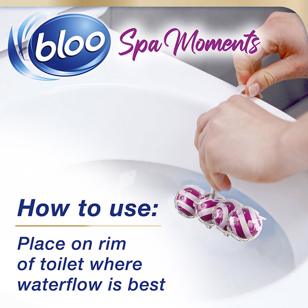 Bloo Toilet Rim Block with Essential Oils for Lasting Freshness & Cleanliness, 12pk Bloo Toilet Rim Block Harmony Spa Essential Oils combines effective toilet cleaning with a refreshing fragrance. This rim block is designed to provide continuous freshness while cleaning and deodorizing with essential oils. Its unique formula helps to maintain a clean and hygienic toilet, while the Harmony Spa fragrance adds a pleasant, soothing aroma to your bathroom. Each block lasts up to several weeks, ensuring long-lasting freshness. Features: Effective cleaning and deodorizing Infused with essential oils for a refreshing scent Maintains a clean and hygienic toilet Lasts up to several weeks Easy to use and replace How to use: Place the rim block in the toilet bowl where it will be exposed to water flow. Replace when the fragrance diminishes or the block is used up. Safety Warnings: Keep out of reach of children. Avoid contact with skin and eyes. Ingredients: Sodium Sulfate, Fragrance, Colourants. Box Contains: Bloo Toilet Rim Block with Essential Oils for Lasting Freshness & Cleanliness, 12pk.