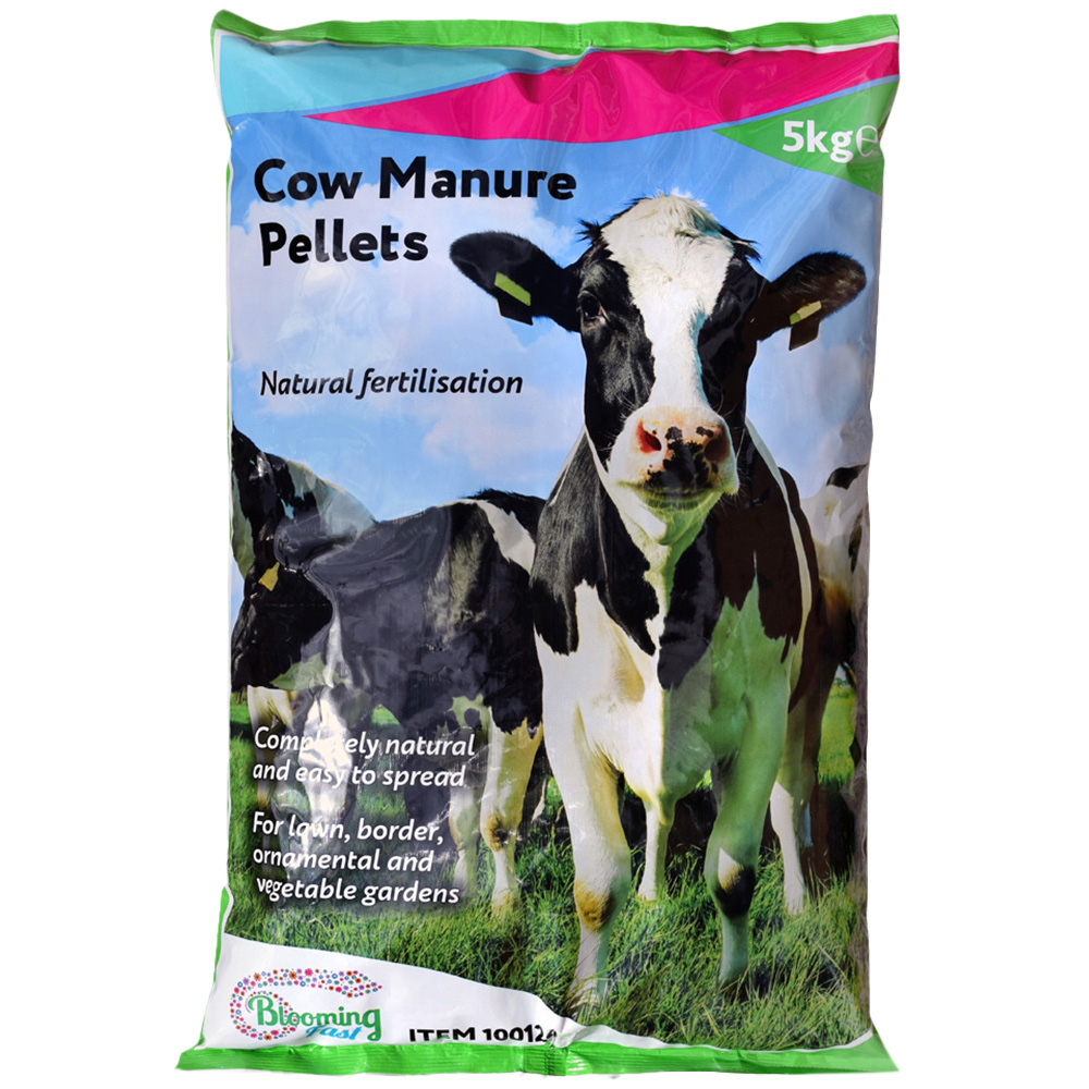 Feed your green friends the best with the wilko Blooming Fast Cow Manure Pellets. Made from 100% composted cow manure, the nutrients are completely organic and will help to give your soil an open and airy structure and much-increased fertility. The pellets contain added nitrogen, phosphate, potassium and other trace elements that are excellent for water retention, being about to hold three times their weight in water. The pellets can be used at any time of year except when there is a frost. Spread them evenly onto the moist ground and when rain is expected. Directions for use: Lawns: 150-200g per m² in April, with further applications in June and August. Borders with mixed shrubs and perennials: 150-200g per m² worked into the soil in early April and again in July. Potatoes: 150-200g per m² before planting, with a second application in July, worked into the soil. Fruit trees, shrubs and roses: 125-150g per m² worked into the soil in early April and again in July. Keep away from pets and children and store in a cool, dry place. Wash hands after use. Supplied as a 5kg bag (please see the bag for further application instructions).
