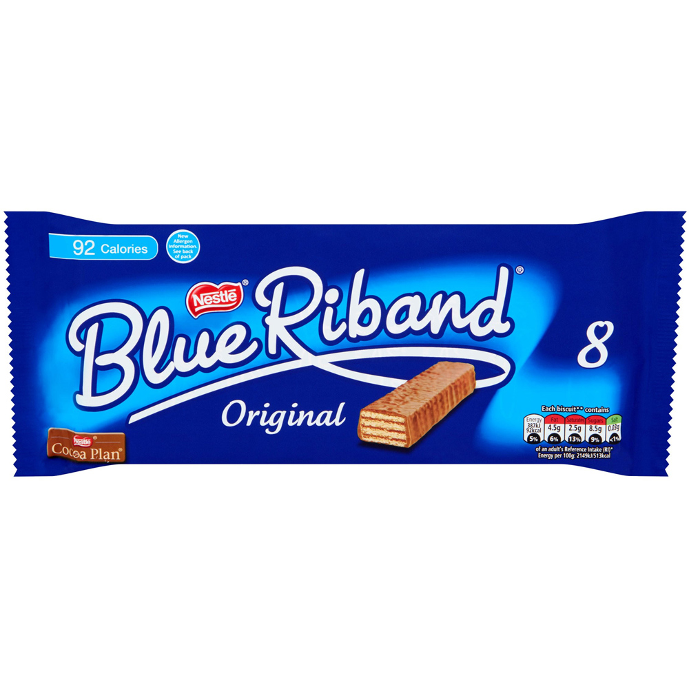 Blue Riband Was First Launched In 1936 By Gray Dunn, Which Was Then Acquired By Rowntrees And Subsequently By Nestle In 1988, And Continues To Be A Real Family Favourite, Consisting Of Four Layers Of Crisp Wafer And Creamy Praline Covered In Smooth Milk Chocolate. At Only 92 Calories Per Bar, Blue Riband Is Perfect For A Treat Any Time Of Day, Containing No Artificial Colours, Flavours Or Preservatives, And Is Made With 100% Certified Sustainable Cocoa From The Nestle Cocoa Plan. Our Chocolate Biscuit Bars Are Also Free From Hydrogenated Fat And Eggs, And Are Suitable For Vegetarians. The Nestle Cocoa Plan Works With Utz To Ensure A Better Future For Cocoa Farmers And Even Better Chocolate For You. Thanks To The Cocoa Plan, This Means No Matter Where In The World You Buy A Blue Riband, You Know That The Cocoa Used To Make Its Delicious Chocolate Layer Was Responsibly Sourced. Eight Crisp Wafer Biscuits Covered In Real Milk Chocolate. 92 Calories. Free From Artificial Flavours, Colours And Preservatives. Blue Riband.