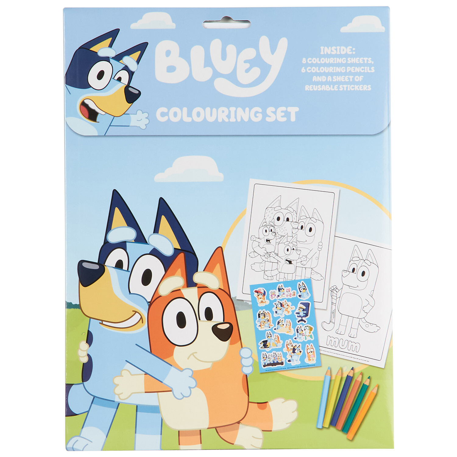 Encourage creativity in your children in a fun way with this Bluey Colouring Set. It includes colouring sheets, pencils and a sheet of reusable stickers for added fun. Great gift for any Bluey fan, the set is a perfect crafting and colouring activity to encourage creativity.