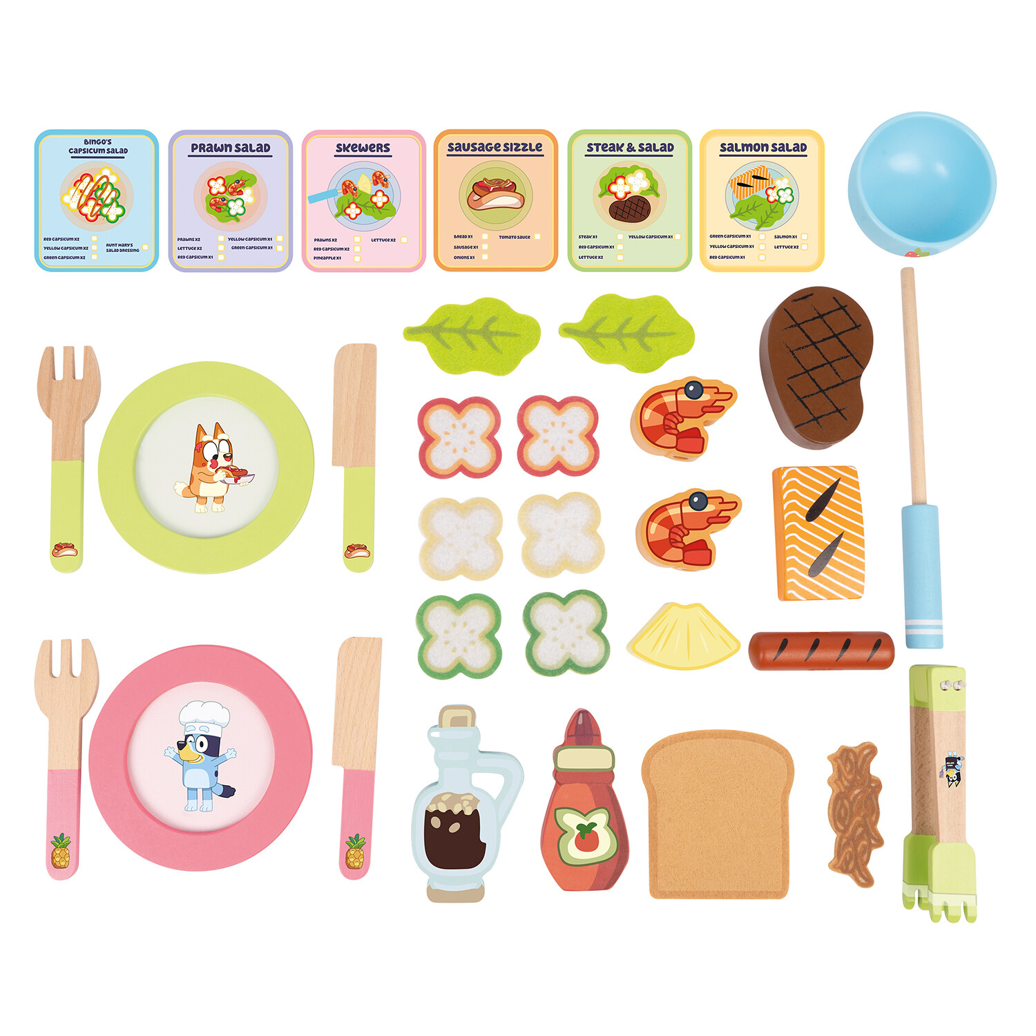 Cook up a storm with the Bluey Tabletop BBQ Playset. This set comes with a wooden tabletop, various toy ingredients, and six recipe cards to let budding chefs create delicious treats for their friends and family. It encourages children to be more creative and imaginative while helping improve their hand-eye coordination and motor skills in a super fun way, making it a perfect gift for any Bluey fan.