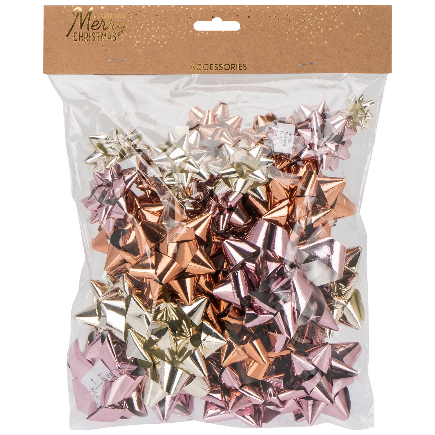 Give your gifts the perfect finishing touch this year with this Set of 30 Blush, Rose and Champagne Gold Bow Pack. This pack contains bow shaped decorative ribbons in a variety of blush tones. Easy to attach with a sticky patch on the back, they're perfect for finishing off that important gift for an important person.