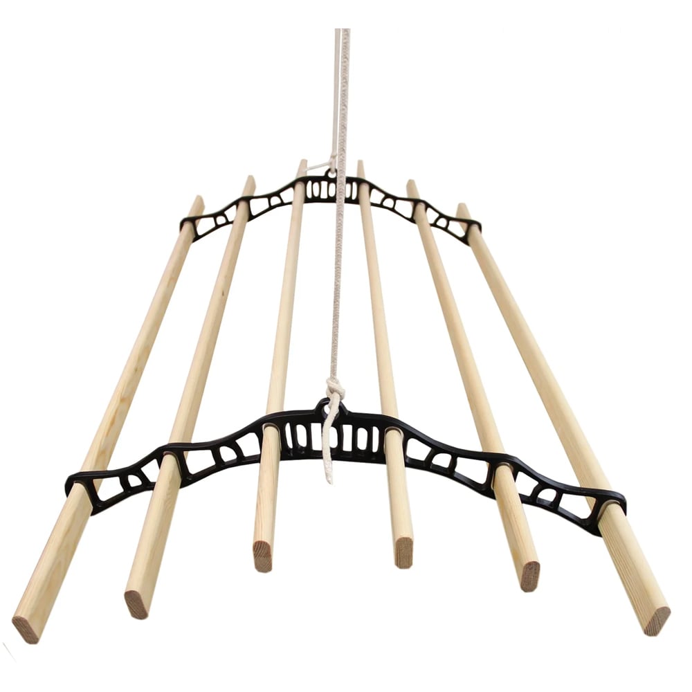 Want your home to look authentic, traditional, and homely? Care for the environment and want to reduce your carbon footprint? We have just the thing for you. Our Clothes Airer instantly becomes a superb design feature in your home with no practicality lost. A truly innovative alternative to tumble-drying, the Clothes Airer raises your clothes to the ceiling where natural heat works to dry them within 2-4 hours. Specifically designed to be durable and strong, the 6 high-quality, ethically-sourced pine laths are able to withstand large clothing loads. The clear-coat varnished timber adopts a traditional appeal as they sit between the authentic cast-iron rack ends and pulleys whilst remaining strong and supremely long-lasting. Product Features: * Strong and sturdy clothes airer with pulley system in black * Traditional and authentic appeal * The 6 pine laths can withstand large clothing loads * High-quality materials: varnished pine wood & powder-coated cast iron * Easy-to-fit on most ceiling, even sloped ceilings * Includes illustrated instructions and fixing kit included Specifications: * Material: Ethically-sourced pine, cast iron rack ends, pulleys, and wheels, cotton rope * Finish: Clear-coat varnished pine; powder-coated cast iron * Dimensions: 140cm (L) x 56cm (W) x 14cm (H) * Weight: 4kg