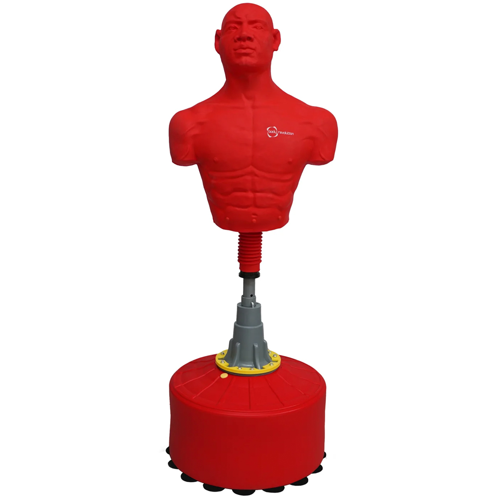 Transform your training sessions with this large free standing boxing dummy, designed to bring the intensity and realism of real-life sparring to your indoor or outdoor space. Perfect for both beginners and seasoned fighters, this versatile training dummy is built to withstand the most rigorous workouts, ensuring you can push your limits and enhance your skills. This boxing dummy is ideal for kick boxing, MMA, boxing, and other impact sports, allowing you to practice wherever suits you best. Its realistic design closely replicates the impact of real training, helping you train effectively. Constructed with high-density foam and a durable rubber shell, it provides a solid and resilient target that stands up to repeated strikes. Equipped with suction pad feet, it offers a secure and easy setup, so you can start training in no time. Its dimensions, height ranging from 1700-1750mm (170-175cm or 67-68.9 inches) and width of 630mm (63cm or 24.8 inches) make it a substantial and effective training tool. Whether you're perfecting your punches, working on your footwork, or refining your defensive manoeuvres, the boxing dummy is your ultimate training partner. Its realistic features and sturdy construction provide an unparalleled training experience, helping you achieve your fitness and fighting goals. Get ready to take your training to the next level! Product Features: * Ideal For Indoors & Outdoors * Realistic Features That Replicate Real Impact * Built With High Quality Materials * Suction Pad Feet for Quick Installation * Adjustable Height Specifications: * Colour: Red * Weight: 33kg * Material: High-Density Foam & Rubber * Height: 1700-1750mm / 170-175cm / 67-68.9” * Width: 620mm / 62cm / 24.4” * Depth: 620mm / 62cm / 24.4” Box Contents: * 1 x Free Standing Boxing Dummy * 1 x Assembly Kit