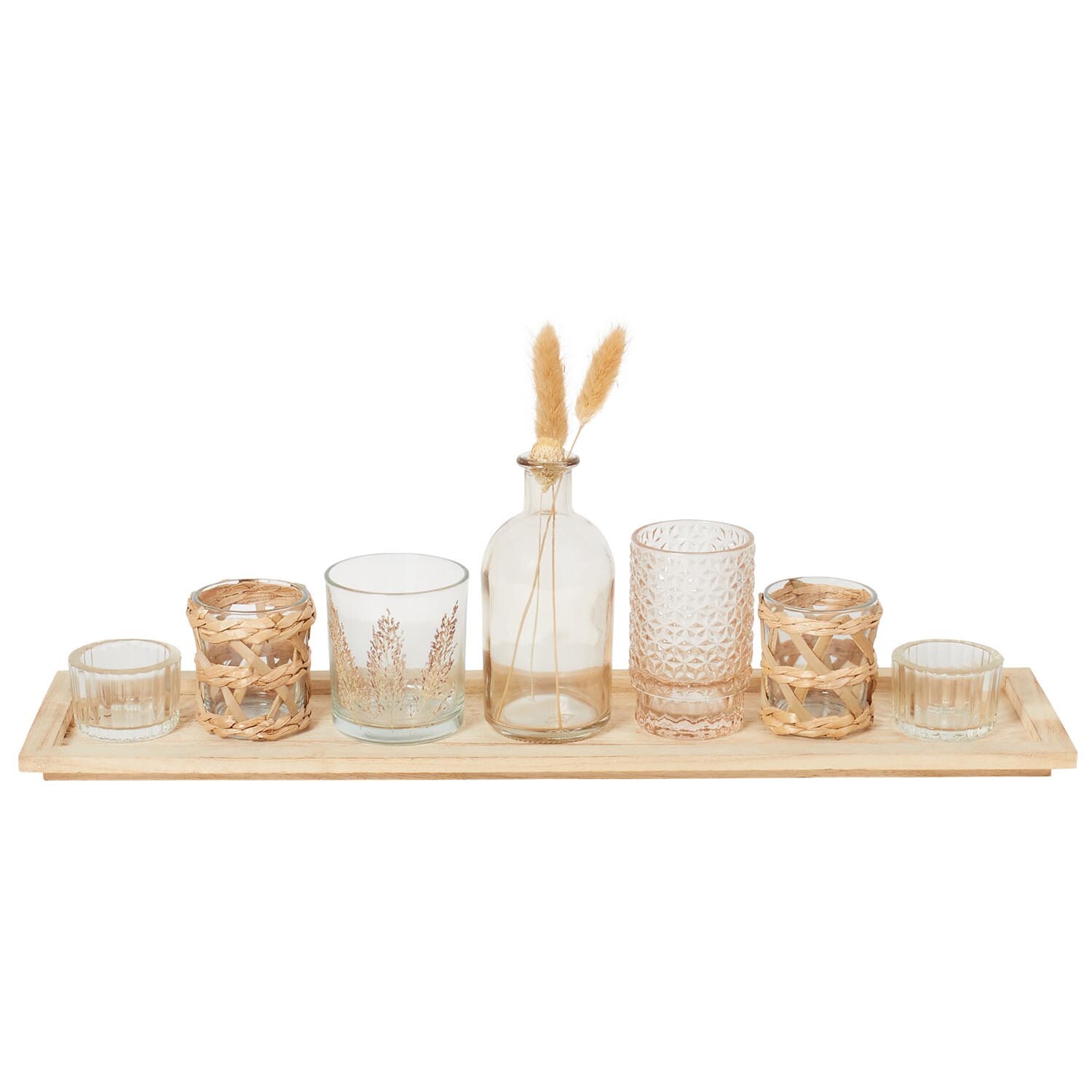 The Bohemia Candle Tray is the perfect addition to your home, adding a rustic and charming element to accent tables, mantelpieces, and shelves. The tray comes with various candle holders and is accented with dried floristry for a natural feel. The tray is ideal for votive candles, tealights, and more, and will make a wonderful centrepiece in any room.