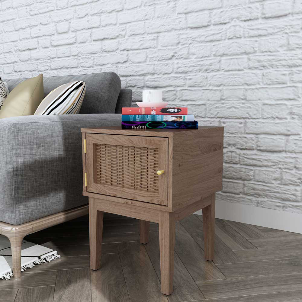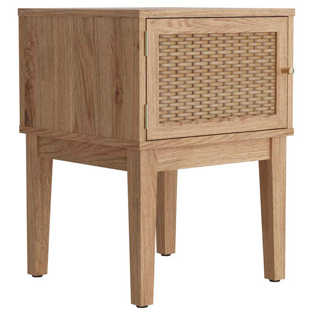 Bordeaux Single Door Oak Rattan Bedside Table Image
