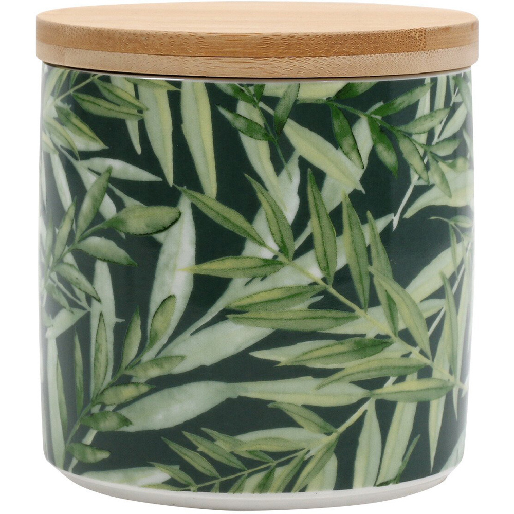 Bring a touch of nature into your home with the stylish and practical Botanical Leaf Ceramic Canister with Bamboo Lid. Featuring a trendy overlapping leaf design with dark green background and a bamboo lid with an airtight silicone seal to keep your food fresh, this canister will look gorgeous on any countertop.