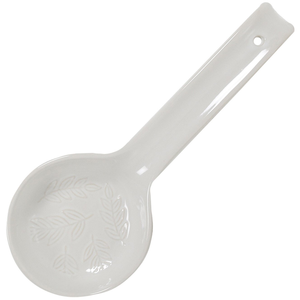 The Botanical Spoon Rest is an elegant piece for your kitchen, available in a deep forest green or a classic white. Your spoon rest features an embossed botanical leaves design in the centre, helping it to coordinate with the rest of the Botanical kitchen collection. Perfect for putting your spoon on whilst you make a tea, or your cooking spoon when making your next dish, it helps to prevent drips on the table top and keeping it clean as you raise it above the counter.