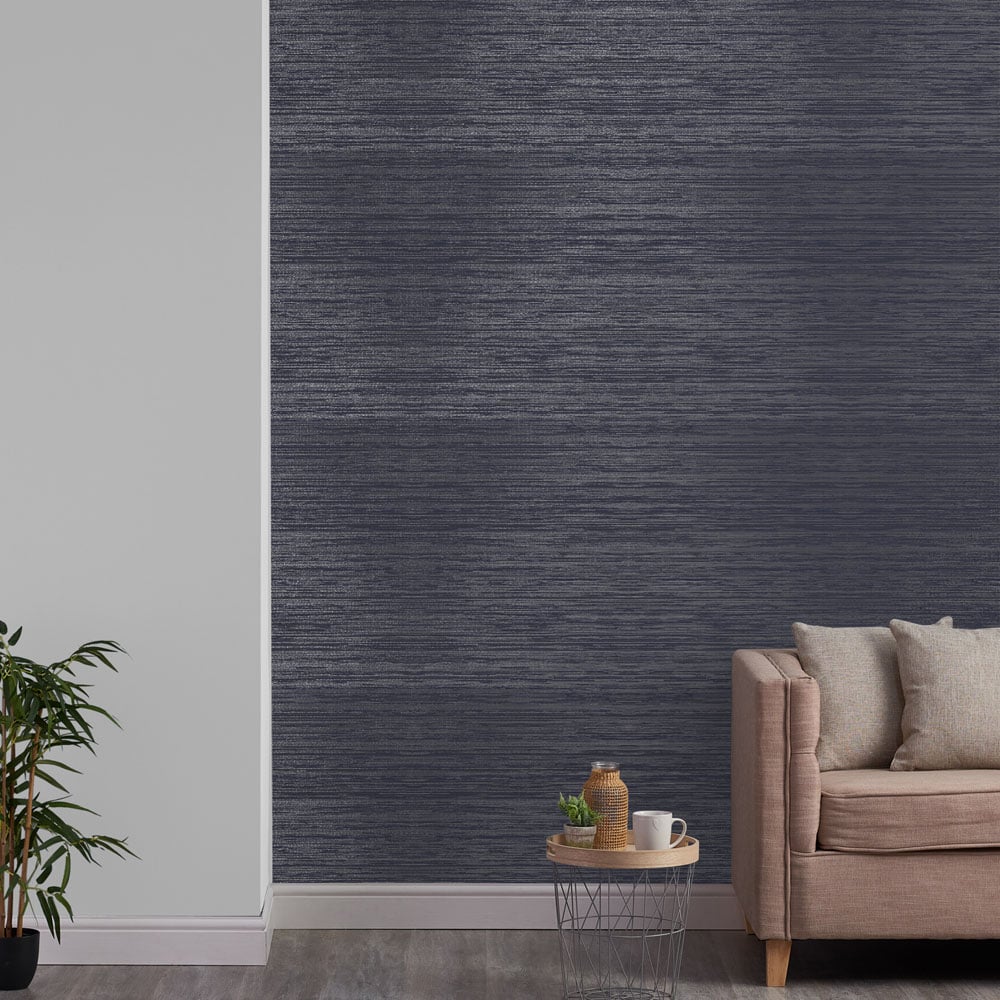 Give a fresh contemporary design for your walls with Boutique Gilded Texture Sapphire Wallpaper. As the name suggests, the gilded texture is an opulent, richly embellished texture, resembling a grass-cloth design. The deep horizontal emboss is enhanced with metallic highlights for a glamorous and luxurious look for your walls. The wallpaper covers minor imperfections in your wall and is easy to apply/remove with Paste the Wall Technology. The vinyl, extra-washable metallic wallpaper is perfect for the bedroom, living room, kitchen, and bathroom. The roll length is 10m, the width is 52cm and the design repeat 64cm. Application: Paste the wall. Design match: straight.