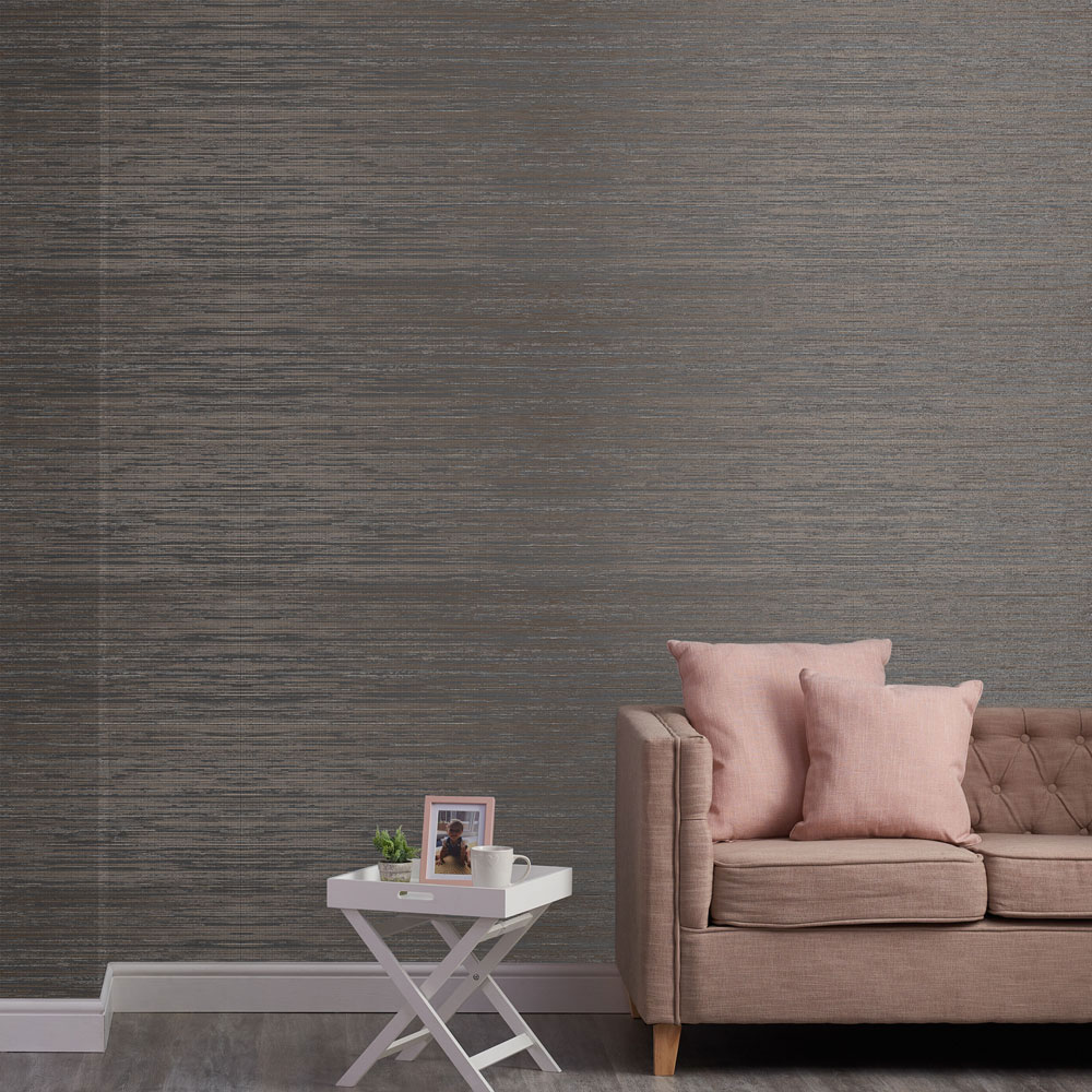 Give a fresh contemporary design for your walls with Boutique Gilded Texture Smokey Quartz Wallpaper. As the name suggests, the gilded texture is an opulent, richly embellished texture, resembling a grass-cloth design. The deep horizontal emboss is enhanced with metallic highlights for a glamorous and luxurious look for your walls. The wallpaper covers minor imperfections in your wall and is easy to apply/remove with Paste the Wall Technology. The vinyl, extra-washable metallic wallpaper is perfect for the bedroom, living room, kitchen, and bathroom. The roll length is 10m, the width is 52cm and the design repeat 64cm. Application: Paste the wall. Design match: straight.