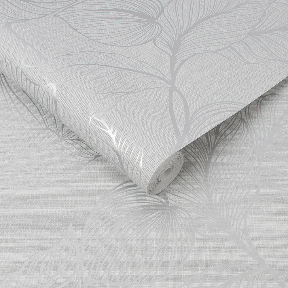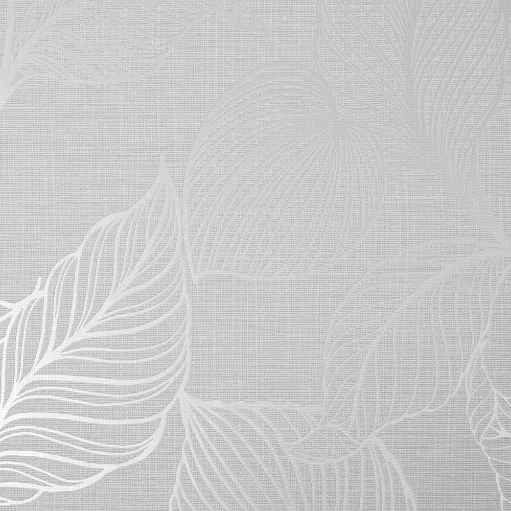 Experience the pleasant aura of the Boutique Royal Palm Moonstone Wallpaper which is ideal for most interior spaces. This wallpaper features a classic woven background over which foil hosta leaves shimmer with the light, illuminating a hallway or any other room of your choice. It can be used for an entire room or to create an eye-catching feature wall excluding the bathroom and kitchen. This wallpaper is a paste-the-wall application. Instructions for care: Sponge clean with a damp cloth and mild detergent to remove marks.