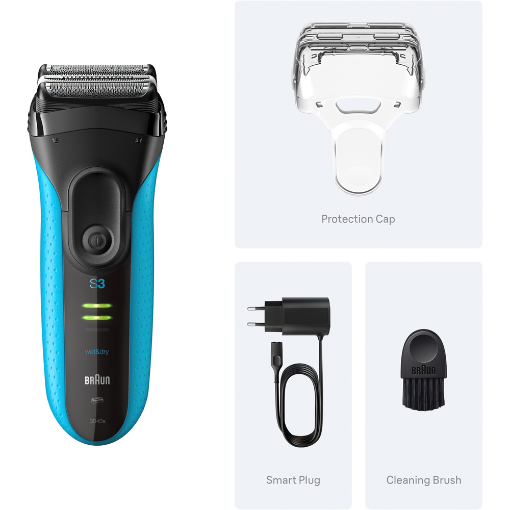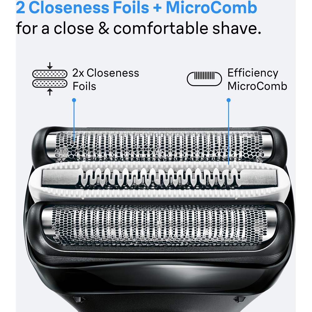Upgrade your grooming routine with the Braun Series 3 Plus electric shaver, which offers a close and comfortable shave. The two foil shaving elements and a centre trimmer to shave longer hairs. Flexible blades adapt to follow the contours of your face. Efficiency MicroComb captures more hairs in one stroke (vs the previous Braun Series 3, tested on a 3-day beard). Precision trimmer, to precisely contour sideburns or a moustache. Thin shaving head, for an easy shave even in hard-to-reach areas. The Series 3 Plus electric razor for men is waterproof. Made in Germany. Close and comfortable shave: Braun Series 3 Plus electric shaver is equipped with two Braun foil shaving elements and a centre trimmer to shave longer hairs. Three flex blades: The Flexible Blades adapt to your contours for an easy shave on any area of your face Efficiency MicroComb: A specialized comb captures more hair in each stroke, for a faster and gentler shave (vs. Braun Series 3. Tested on 3-day beard) Precision in every details: Comes with an integrated Precision Trimmer to contour sideburns or a moustache and has a thin shaving head for an easy shave even in hard-to-reach areas Made in Germany, built to last for years: The shaver is 100% waterproof for wet and dry use. Up to 45 minutes of battery runtime and a 5-minute quick charge for one shave.
