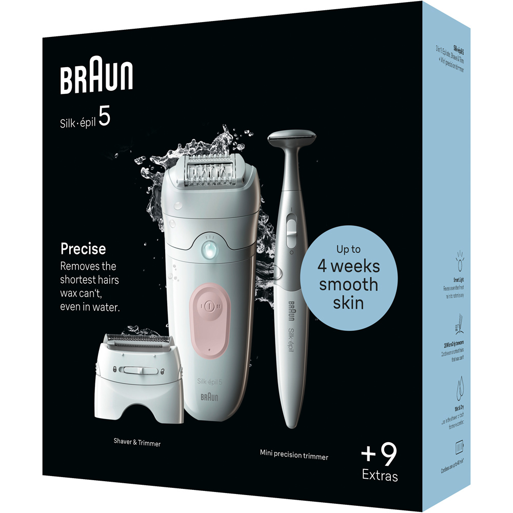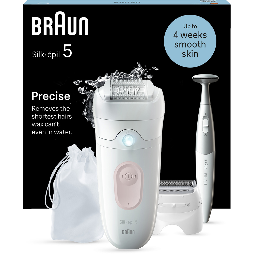 Get instant hair removal and salon-smooth skin with the Braun Silk-epil 5 5-230 Epilator. This compact epilator features MicroGrip tweezer technology that captures and removes hairs as short as 0.5mm. It also features a massage roller cap that ensures you experience less pain sensation. This cordless epilator is designed for convenience and ensures up to one month of smooth skin, eliminating the need for clean-ups or appointments. It is ideal for dry and wet usage, and you can gently epilate in the bath or shower under warm water for reduced pain sensation. It includes a bikini trimmer, lady shaver head and trimmer comb for sensitive areas with a soft pouch for carrying purposes. Avoid the inconvenience of using hair removal products such as wax and make your skincare routine convenient with this chemical-free epilator made in Germany.