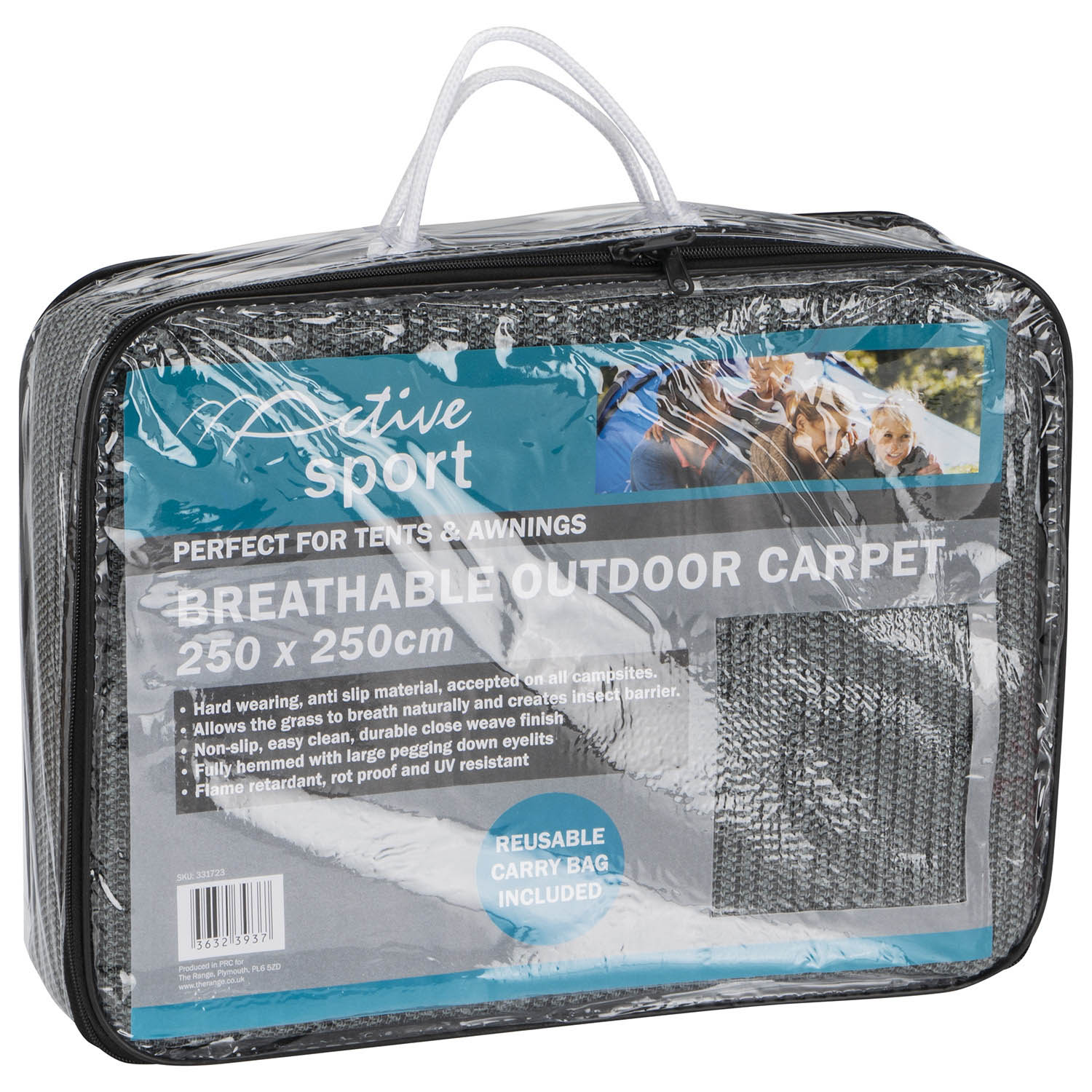 The fully hemmed design of this Breathable Outdoor Mat means that the grass underneath can still breath, making it the perfect mat to create a comfortable flooring in tents for any camping trip. This mat is accepted by all campsites and will also act as an insect barrier between the ground and your tent. Made from HDPE, this hard-wearing mat is a non-slip surface that's easy to wipe clean, helping to make maintenance of your camping gear easy. Its flame and UV resistant, as well as rot proof, so its ideal for taking out into the wild world on camping trips time and time again.