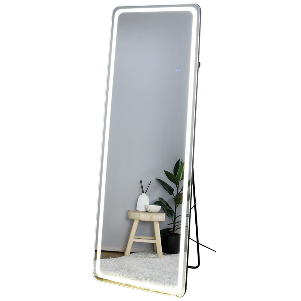Experience the luxury of a Hollywood star each morning with the Bright LED Standing Dress Mirror. This tall, striking mirror enhances your dressing area with ample illumination and contemporary style. Versatile enough for wall or floor placement, its easy installation makes it the perfect accent for bedrooms, living rooms, or hallways. Height: 160cm. Width: 55cm. Depth: 8cm. Weight: 23kg. Material: Glass, iron.