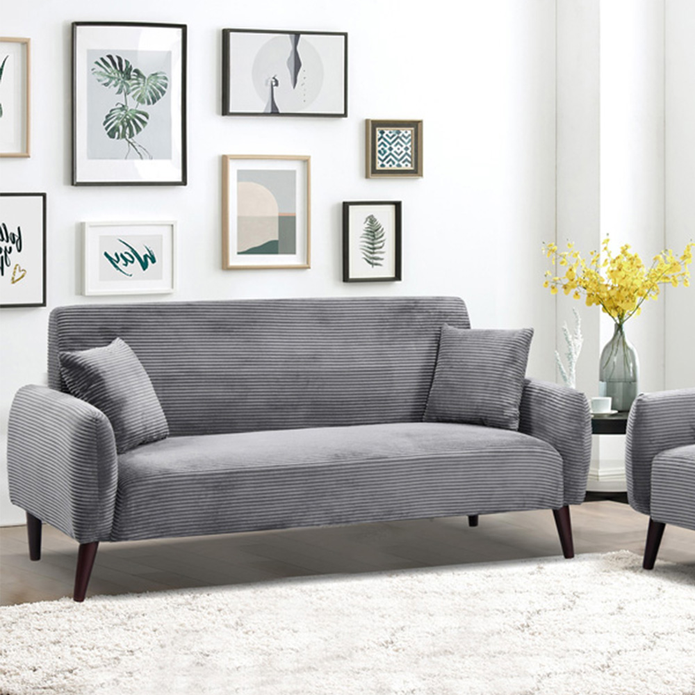 Add a touch of sophistication and comfort to your space with this Brooklyn 5 Seater Grey Jumbo Cord Sofa Set. Soft, stylish and comfortable, this set makes a perfect addition to any living room. Modern and chic, it is upholstered in stunning grey jumbo cord to complement most decors. Also, the sofas come with sturdy wooden legs to maintain balance and stability. This set includes a two-seater and a three-seater sofa.