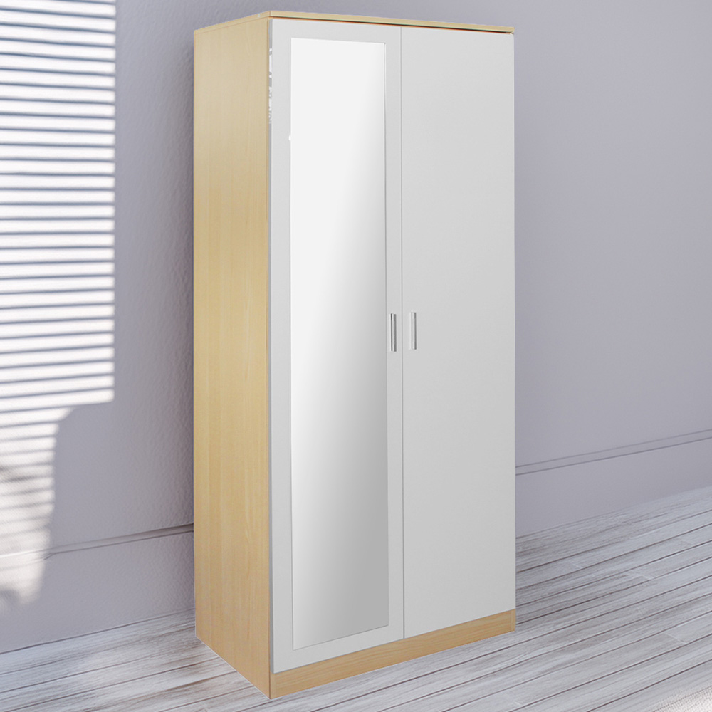 Transform your bedroom storage with this sleek and modern 2-door wardrobe from Brooklyn. Featuring a sophisticated high gloss finish that adds a contemporary touch to any room, this wardrobe combines style with functionality. The full-length mirror door not only serves as a practical dressing aid but also creates an illusion of space, making your room appear larger and brighter. The two-door design offers generous storage space for your clothing and accessories, while the clean lines and minimalist handles maintain its elegant appearance. Perfect for both compact spaces and larger bedrooms, this wardrobe provides an organised solution for your storage needs. The high-quality construction ensures durability, while the mirror panel adds a premium touch to this practical piece of furniture. The wardrobe's versatile design complements various interior styles, from modern to contemporary decor schemes. Colour: Oak and White. Dimensions: H180 x W76 x D47cm. Note: all dimensions are approximate, please allow room for slight variations.