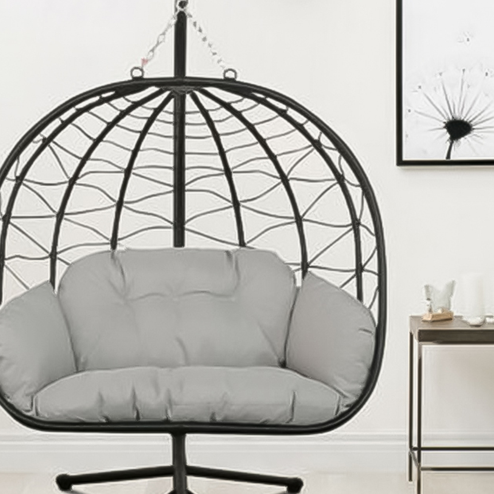 Create a comfortable spot in your outdoor space with this Brooklyn Black Extra Large Swing Egg Chair with a Stand. This hanging egg-shaped swing chair will make the perfect addition to your garden, balcony, or any indoor space. Ideal for outdoors, it is made using a synthetic wicker rattan weave which is UV-resistant and the cushions are splashproof. Protect your garden furniture with our durable and waterproof covers. Explore our wide range of heavy-duty Garden Furniture covers to find the perfect fit for your needs.