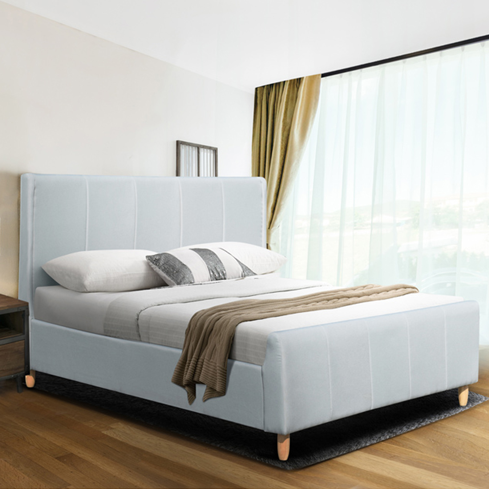 This Brooklyn King Size Blue Upholstered Linen Fabric Bed Frame With 2 Bedside Tables is beautifully upholstered in a blue linen fabric. It features a deep padded headboard and footboard. It is made from a solid wooden frame and has a sprung slatted base to give support to the mattress and give you a fully supportive and comfortable night's sleep. The bed is accompanied by 2 matching bedside tables upholstered in the same material as the bedframe.