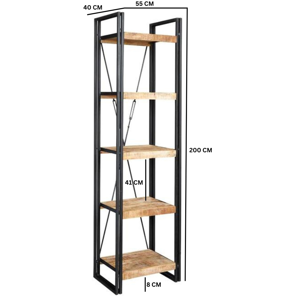 Brooklyn Carnaby 5 Shelf Industrial Slim Open Bookcase