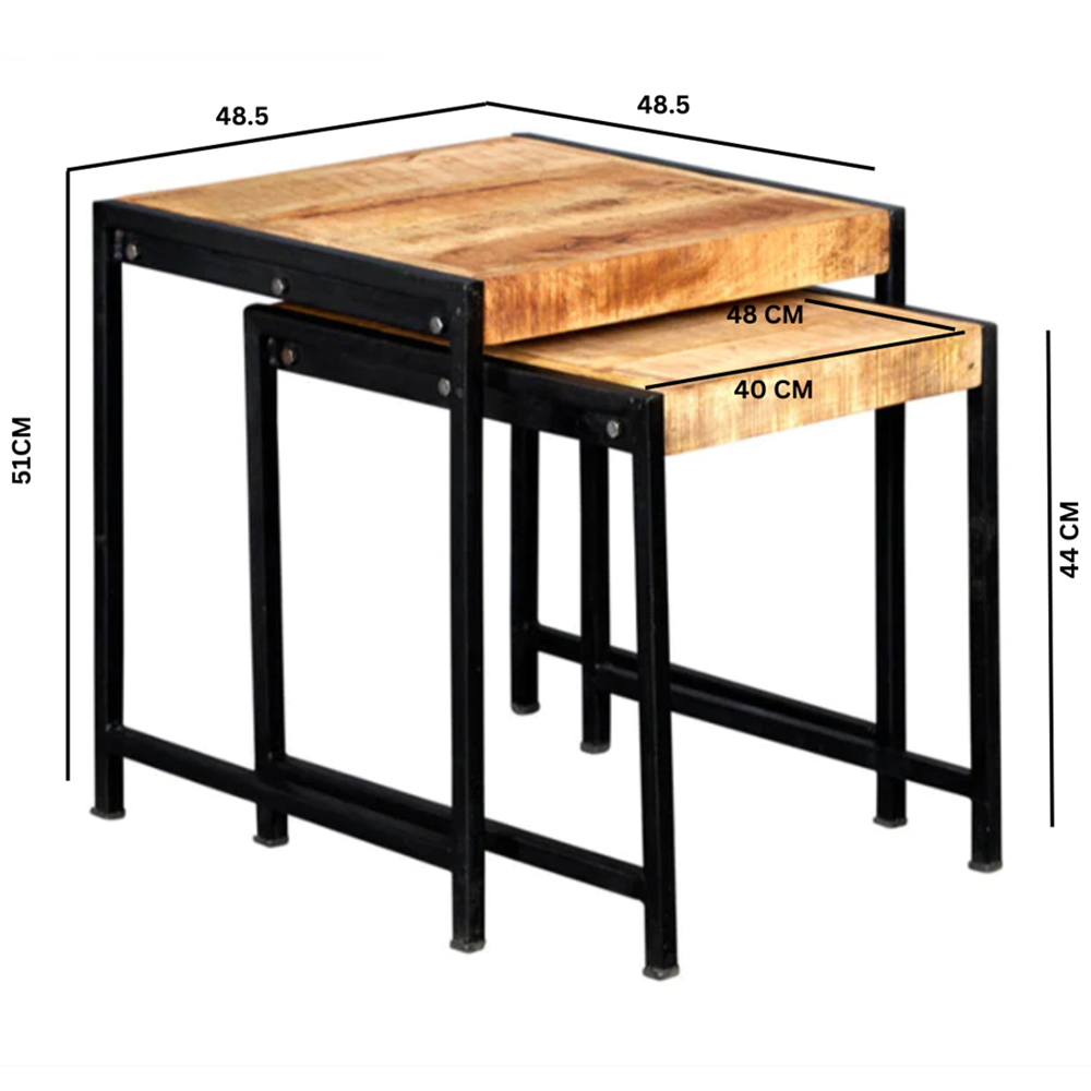Made from reclaimed metal and wood, this industrial nest of two tables are generous in size and will complement any surroundings. The light-grain hardwood is left in its natural state and colour with natural variations and slight cracking with a banded iron edge.
