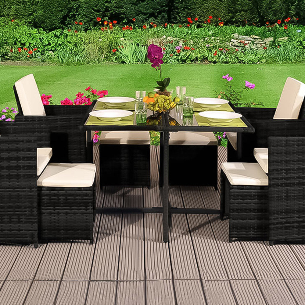 Brooklyn Cube Black 4 Seater Garden Dining Set with Cover