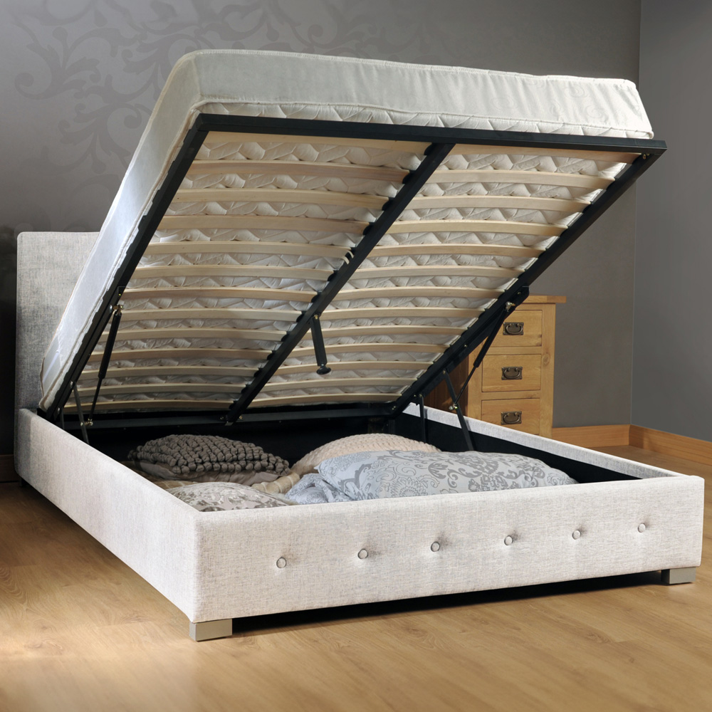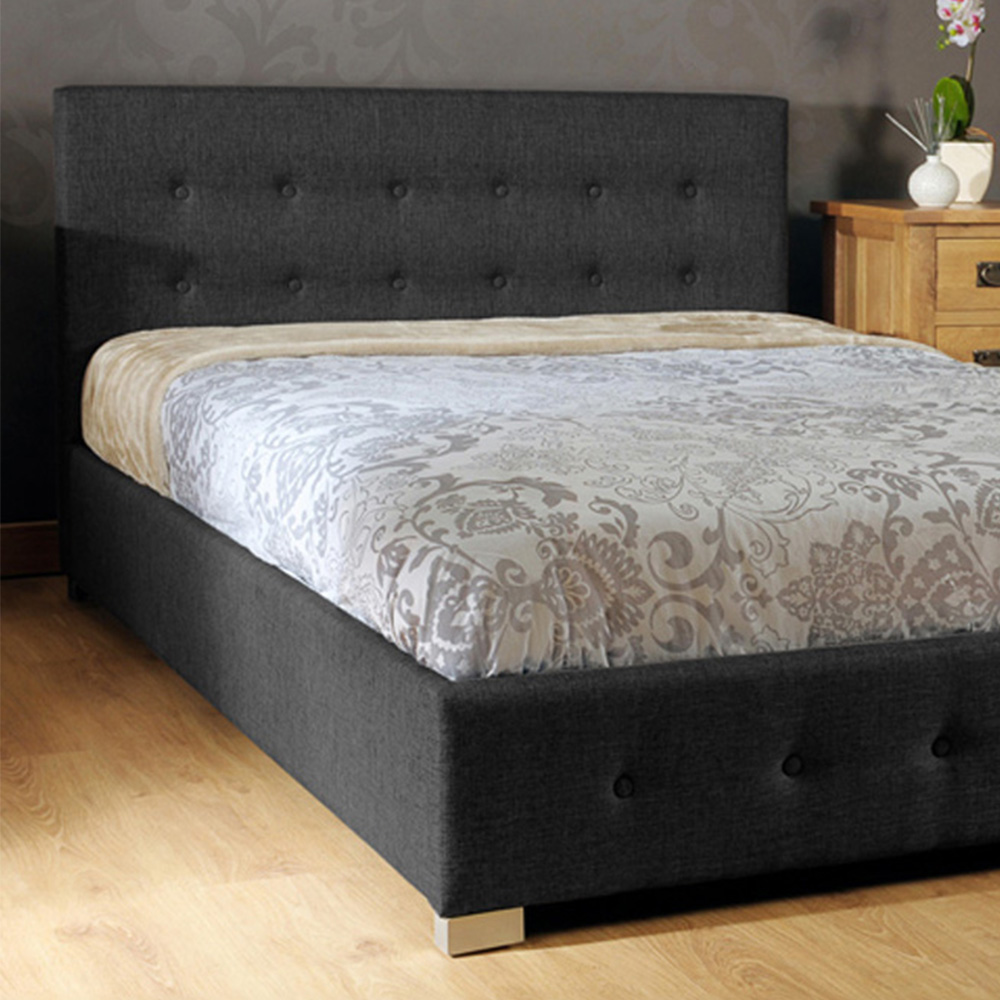 Brooklyn Double Black Fabric Storage Ottoman Bed