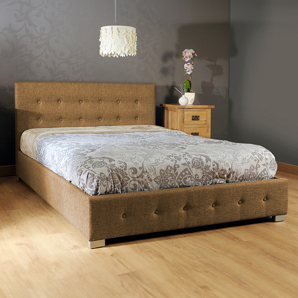 Elevate your bedroom decor with the Brooklyn Double Black Ottoman Bed. This bed provides both style and functionality with plenty of storage space. It has a square headboard with button detail which provides a cosy yet firm support while relaxing. This bed is upholstered using soft fabric and features a sprung slatted base with beech wood slats for natural bounce and better comfort. It also features a gas lift mechanism for instant access to the concealed storage space.