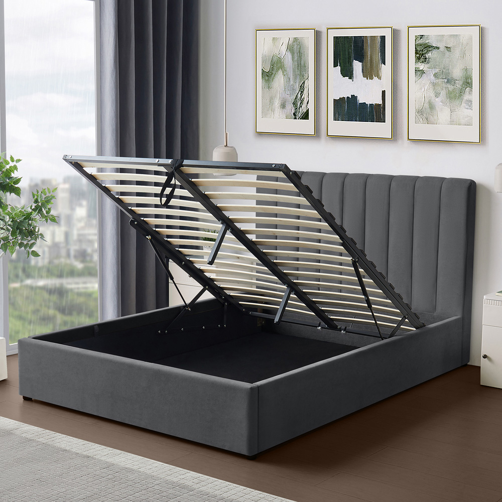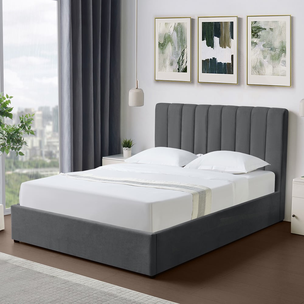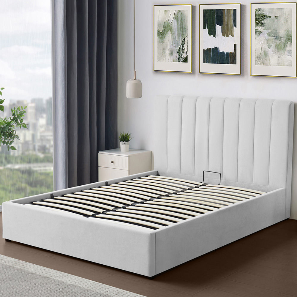 Elevate your bedroom with the Evelynne Fabric Upholstered Ottoman Double Bed Frame, a stunning and practical choice for modern living. Expertly upholstered in soft, durable linen fabric, this elegant double bed frame is designed to fit a standard 135cm x 190cm mattress (mattress not included). The ottoman frame features a smooth gas lift opening, revealing spacious under-bed storage - ideal for stowing away bedding, clothes, or everyday essentials. With easy self-assembly and quick, efficient delivery, the Evelynne combines timeless style with functional design, making it the perfect centrepiece for any contemporary or classic bedroom.