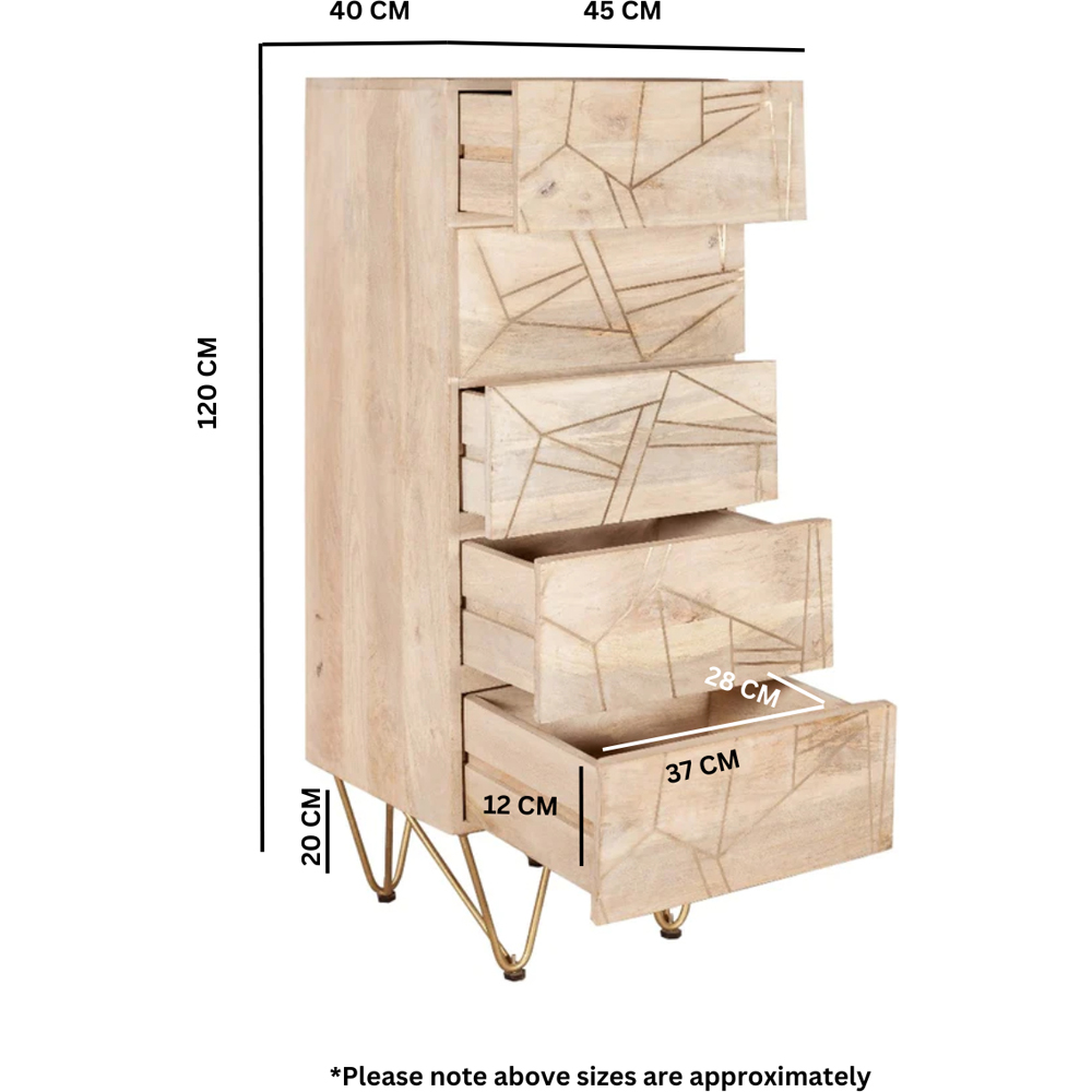 Brooklyn Huyen 5 Drawer Light Gold Tall Chest of Drawers