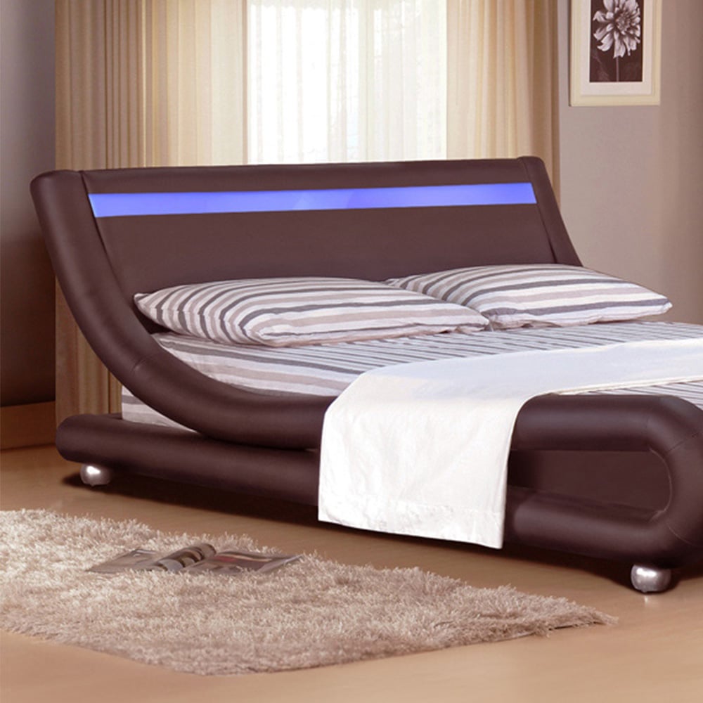 Brooklyn Italian Designer King Size Brown Faux Leather LED Bed Frame