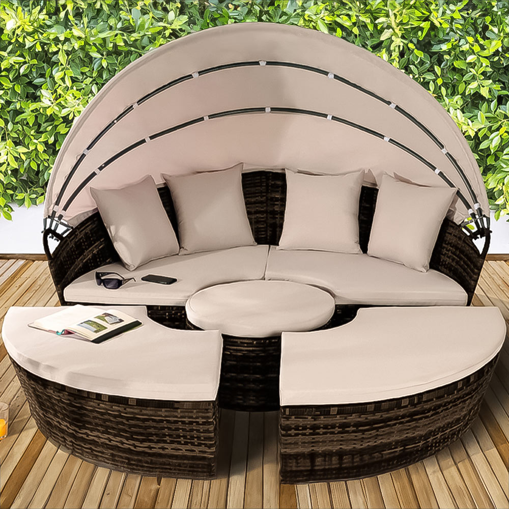 Brooklyn Luxury 8 Seater Brown Rattan Sun Lounger Sofa Set with Canopy 160cm