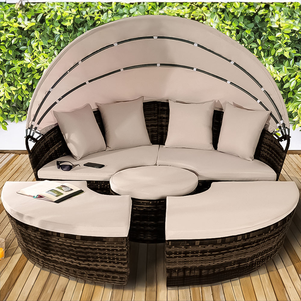 Brooklyn Luxury 8 Seater Brown Rattan Sun Lounger Sofa Set with Canopy and Cover 160cm