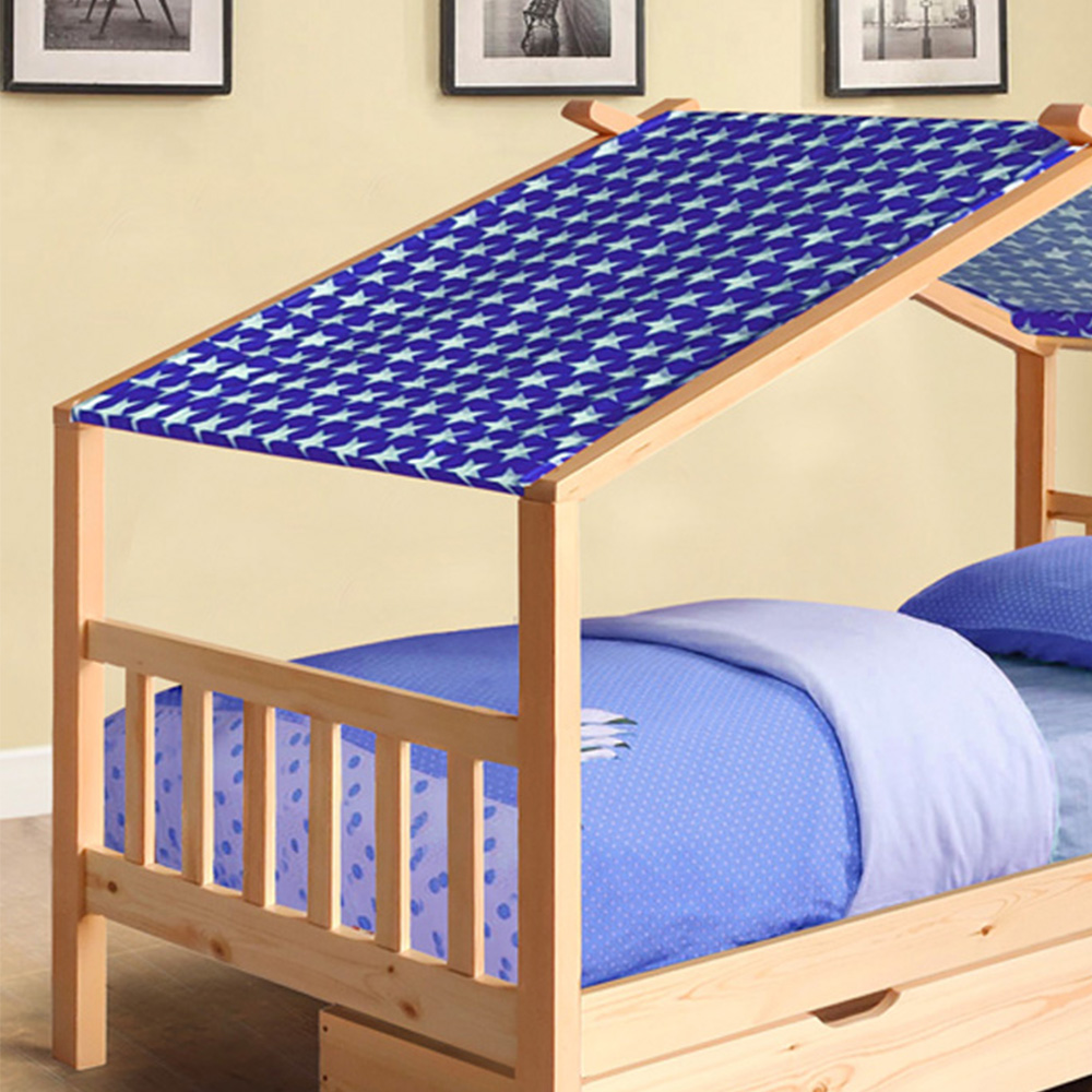 Transform bedtime into a magical adventure with this Brooklyn Single Grey 2-Drawer House Storage Bed with a Blue Tent. This house-style bed frame is crafted using a solid sturdy pine and features a slatted base for extra mattress support. The bed frame is also complemented by a tent that looks amazing and has a fun star design. Perfect for storing bedding and more, the bed frame comes with two handy store drawers underneath to declutter your space.