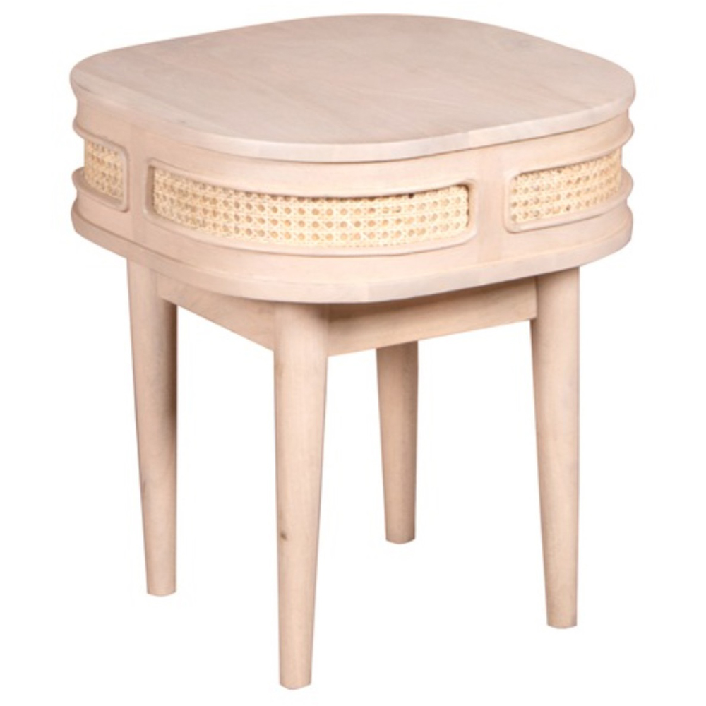 Crafted from a harmonious blend of natural materials, the Valencia Bedside Table brings a touch of coastal-inspired charm to your bedroom. Its spacious dimensions (50cm W x 50cm D x 55cm H) offer ample surface area for your bedside essentials, while its open shelf and single drawer provide convenient storage for books, magazines, or personal treasures. More than just furniture, the Valencia Cane & Mango Wood Bedside Table is an investment in style and functionality. It's the perfect addition to any bedroom, from coastal-inspired retreats to modern sanctuaries. Its natural materials and versatile design create a warm and inviting atmosphere, ensuring you'll wake up feeling refreshed and inspired.