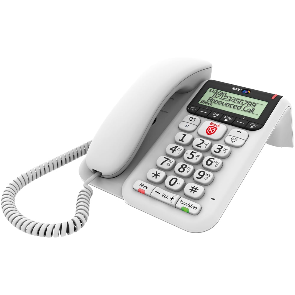 Easily manage home communication with the BT Decor 2600 Corded Telephone with Answer Machine. This phone blocks 100% of nuisance calls, so you only talk to the people you want to. There are two call-blocking modes: announce and answer phone. In Announce mode, any caller not on your contact list or already blocked will have to announce their name before getting through so you can choose whether to accept or reject the call. In answer phone mode, all calls not in your contacts or allowed list are sent straight to your answer machine. You can also block numbers by area code, so any call beginning with the code you enter will be blocked. It can save up to 200 contacts and have the option to block or unblock a contact at any time. Outgoing call control lets you set a PIN to protect calls to mobile and premium rate numbers to prevent any surprises on your bill, useful if you have children or elderly relatives who may unknowingly dial numbers they don’t need to. It saves up to 30 minutes of messages and shows how many messages you’ve received clearly on the screen. Also, don’t miss important calls when away from home with remote access to your messages. Its hands-free feature lets you talk to your caller without holding the handset, so you’re free to get on with other things, make notes, or let other people in the room listen to the conversation over the loudspeaker.
