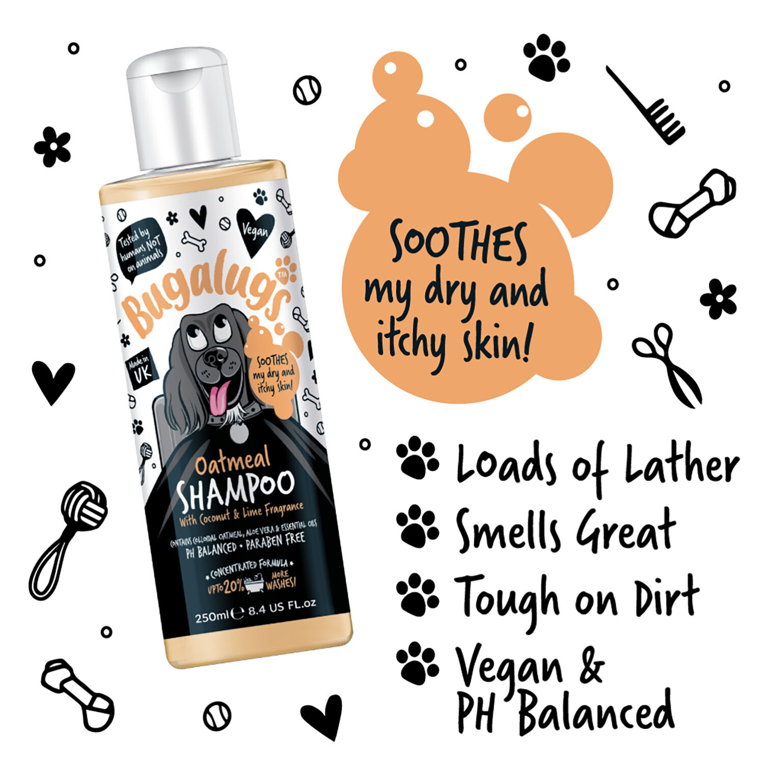 Ensure your furry friend stays clean with the Bugalugs Oatmeal Dog Shampoo 250ml. Infused with a refreshing coconut and lime fragrance, this vegan shampoo is free from parabens. This concentrated formula features colloidal oatmeal, aloe vera, and essential oils to soothe dry, itchy skin. This pH-balanced shampoo provides a gentle, effective cleaning for your pet's comfort and freshness.