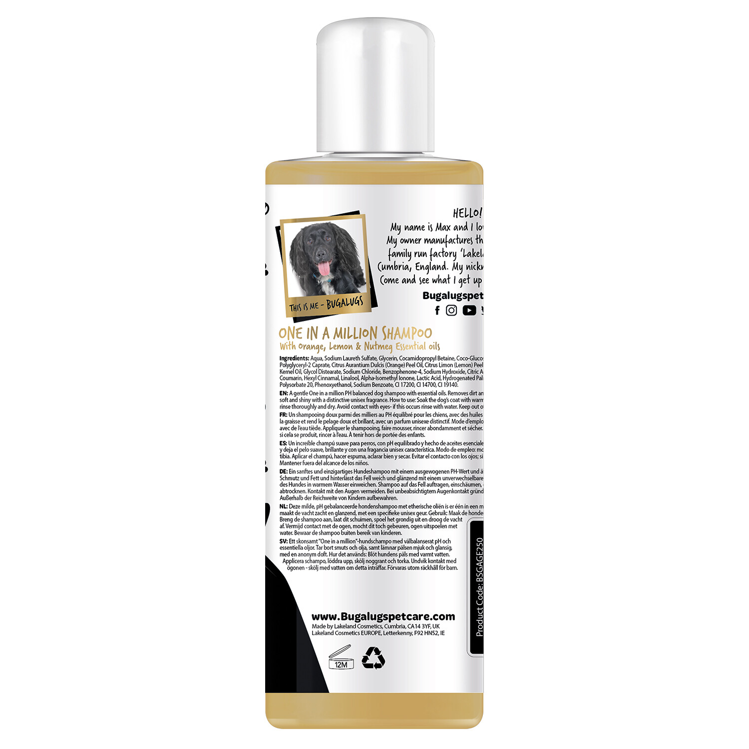 Elevate your dog's grooming routine with the Bugalugs One in a Million Dog Shampoo 250ml. This vegan, pH-balanced shampoo is free from parabens, providing a gentle yet effective clean. Its concentrated formula delivers up to 20% more washes. Perfect for keeping your dog's coat fresh and clean while caring for their sensitive skin.