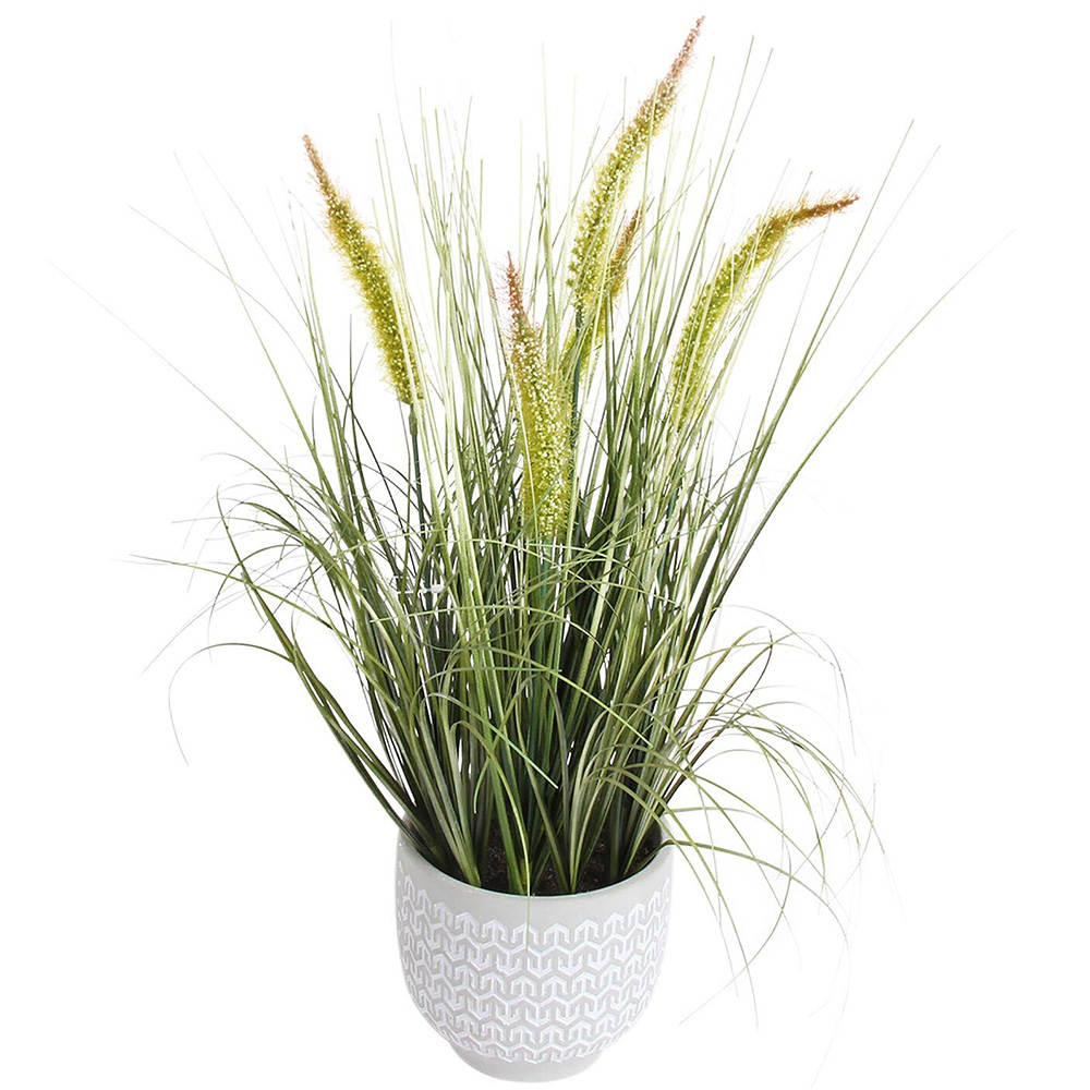 Perfect for the home, this Bulrush in White Pot is a realistic-looking plant that helps bring the outside in. With gorgeous elements that give your home countryside feel, inspired by river plants, it's set in a modern white pot with a geometric design. Ideal for your console table, shelf, or countertop, it's easy to incorporate into your home decor.