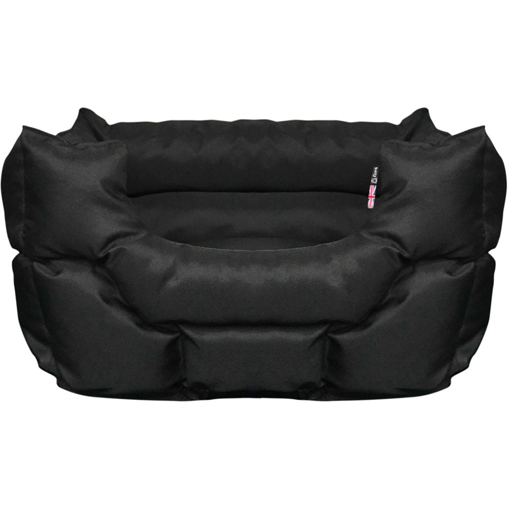 Let your pooch snuggle and sleep in the Bunty Woodland Black Dog Bed. This bed is ideal for outgoing dogs who like to get wet and dirty after a walk and also dogs who prefer to curl up to keep snug and warm. Made from a strong polyester fabric that is easy to keep clean, either wipe with a damp cloth or brush loose dirt off when dry. Also, the bed's high sides provide a secure wall making your pet feel safe and warm, filled with a soft polyester fibre to provide extra comfort. Plus, the rubber-gripped bottom provides a firm foundation and adds an extra layer of insulation. Please ensure you check the size of your pet against the size chart to avoid having to return your product. Size: Large.