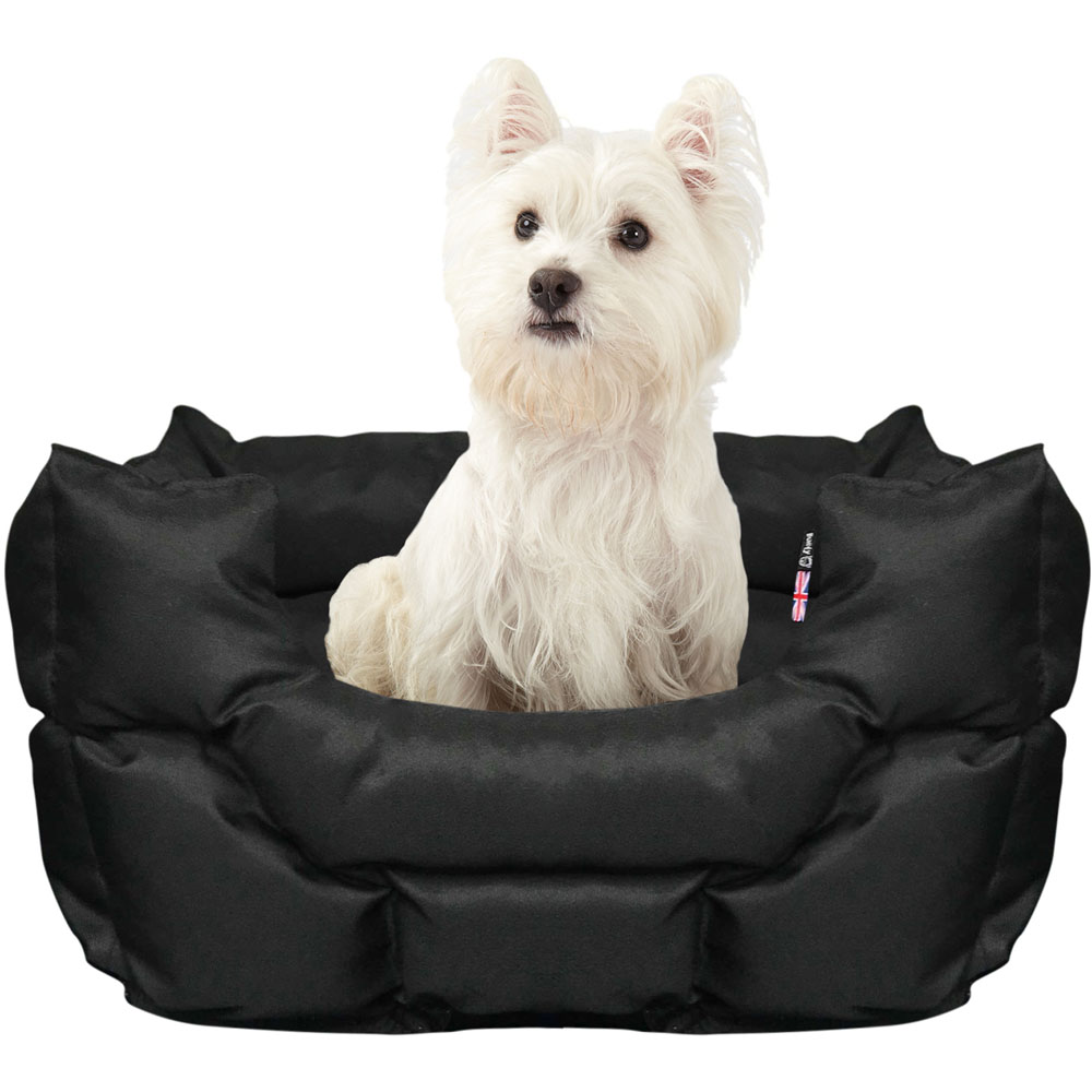 Let your pooch snuggle and sleep in the Bunty Woodland Black Dog Bed. This bed is ideal for outgoing dogs who like to get wet and dirty after a walk and also dogs who prefer to curl up to keep snug and warm. Made from a strong polyester fabric that is easy to keep clean, either wipe with a damp cloth or brush loose dirt off when dry. Also, the bed's high sides provide a secure wall making your pet feel safe and warm, filled with a soft polyester fibre to provide extra comfort. Plus, the rubber-gripped bottom provides a firm foundation and adds an extra layer of insulation. Please ensure you check the size of your pet against the size chart to avoid having to return your product. Size: Medium.