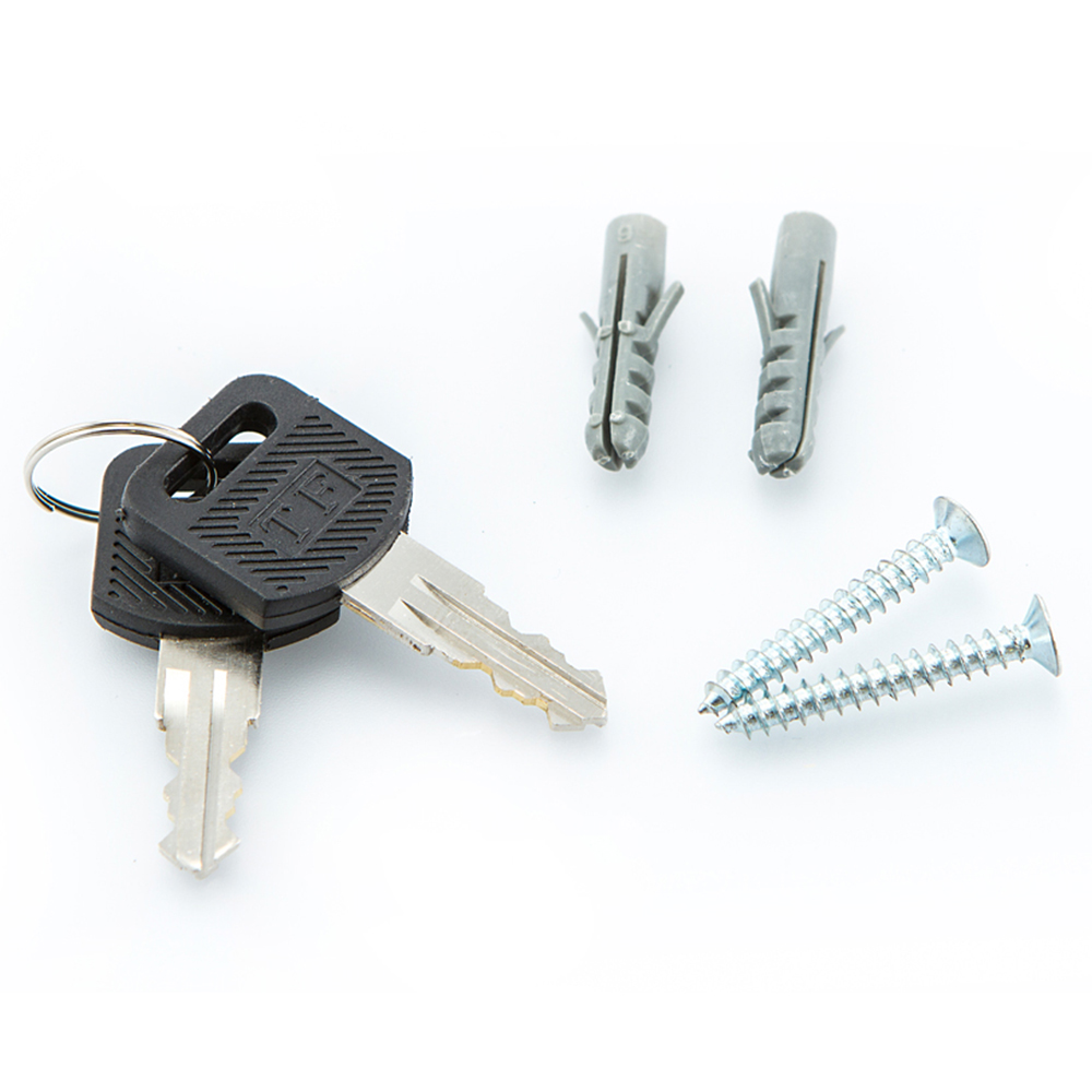 This Burg-Wachter 24 Key Hook Key Cabinet is a secure and practical solution for organising keys, featuring a lockable design with two keys and a sleek grey finish. It offers 24 hooks with coloured key tags for easy identification and an indexing system for quick key selection. Made from sturdy steel, this wall-mountable cabinet ensures durability and includes wall plugs and screws for secure installation, making it ideal for both home and office use.