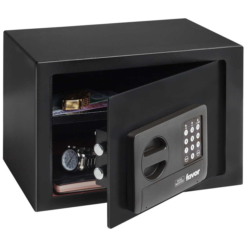 Keep all your important documents and cash safe and secure with the Burg Wachter Favor Black S5E Electronic Safe. The safe features an electronic combination lock. The safe is battery operated. Includes 4 x LR 06 AA batteries. Capacity: 17.8L.