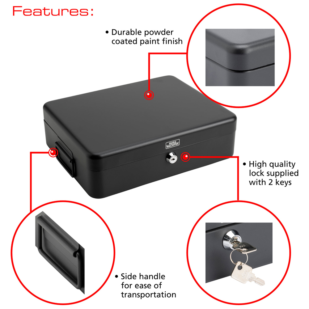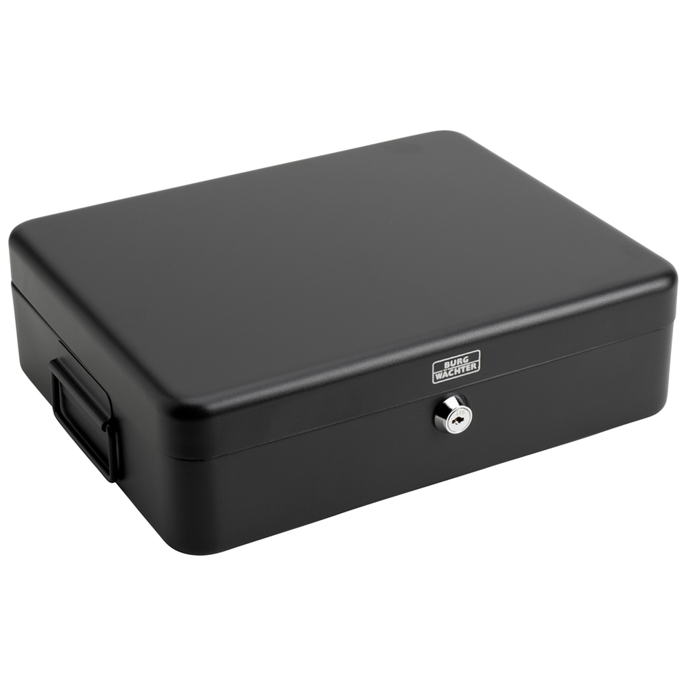 This Burg-Wachter Deed Box 12 inch will hold A4 documents in a strong steel lockable box. It also features a side handle for ease of carrying.