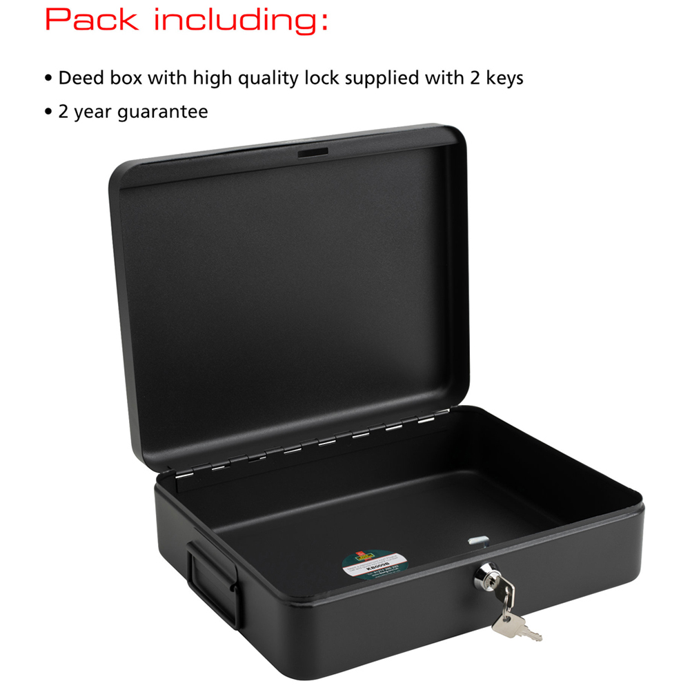 This Burg-Wachter Deed Box will hold folders, files and larger documents in a strong steel lockable box. It also features a side handle for ease of carrying.