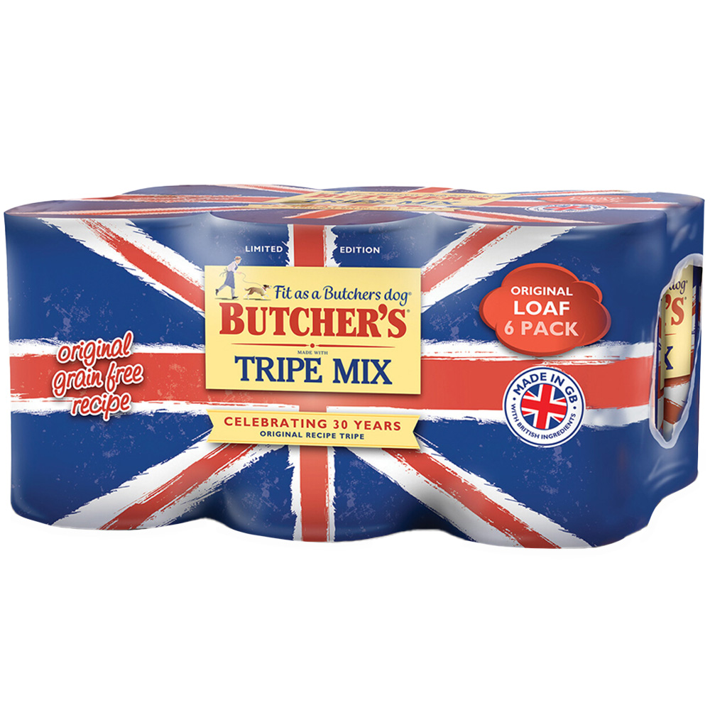 Pamper your cherished pet with their favourite treat by choosing this Butcher's Tripe Mix Wet Dog Food Tins 400g 6 Pack. This dog food is rich in high-quality protein, and calcium to support strong bones, Vitamins A and B12, along with essential Omega-3 and Omega-6 fatty acids to enhance the immune system and encourage healthy skin and a glossy coat in your dog. This tripe is sourced from grass-fed cattle, ensuring your dog enjoys a nutritious and delicious meal each day.