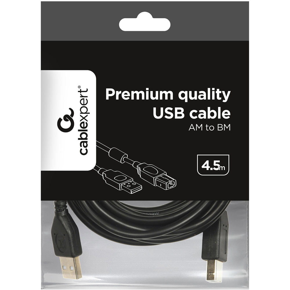 The Cablexpert Premium Quality USB A to B Printer Cable is designed to provide a reliable connection for various devices, including printers, scanners, and other peripherals. Its robust construction ensures durability and longevity, making it an essential accessory for both home and office environments. Featuring gold-plated contacts, this USB 2.0 AM to BM cable guarantees high-speed data transfer with minimal signal loss. The 30u” gold plating enhances conductivity, ensuring that your devices communicate efficiently and effectively. The moulded connectors are equipped with integrated strain relief, which helps prevent wear and tear over time. Additionally, the cable is fitted with a ferrite core filter that reduces electromagnetic interference, further enhancing performance. This thoughtful design not only makes the cable functional but also a reliable choice for users seeking quality and efficiency in their connectivity solutions.