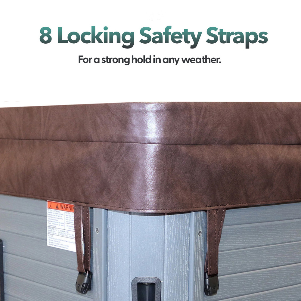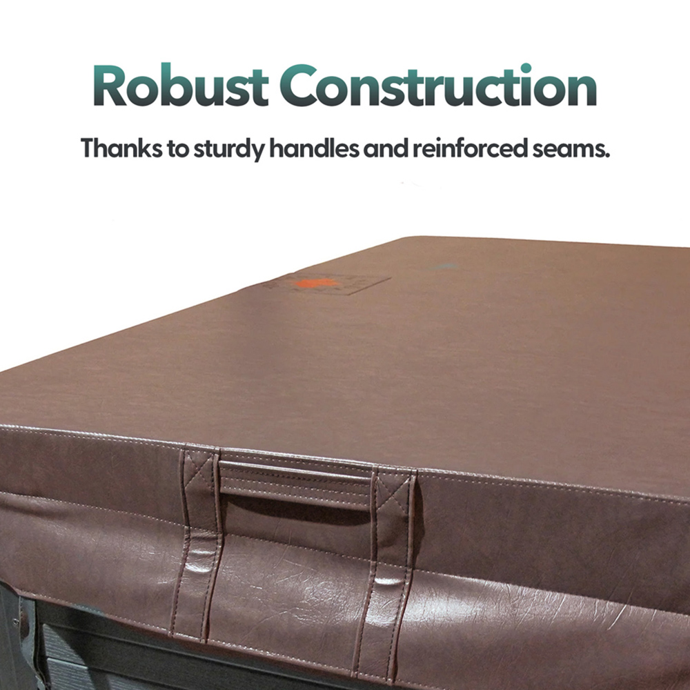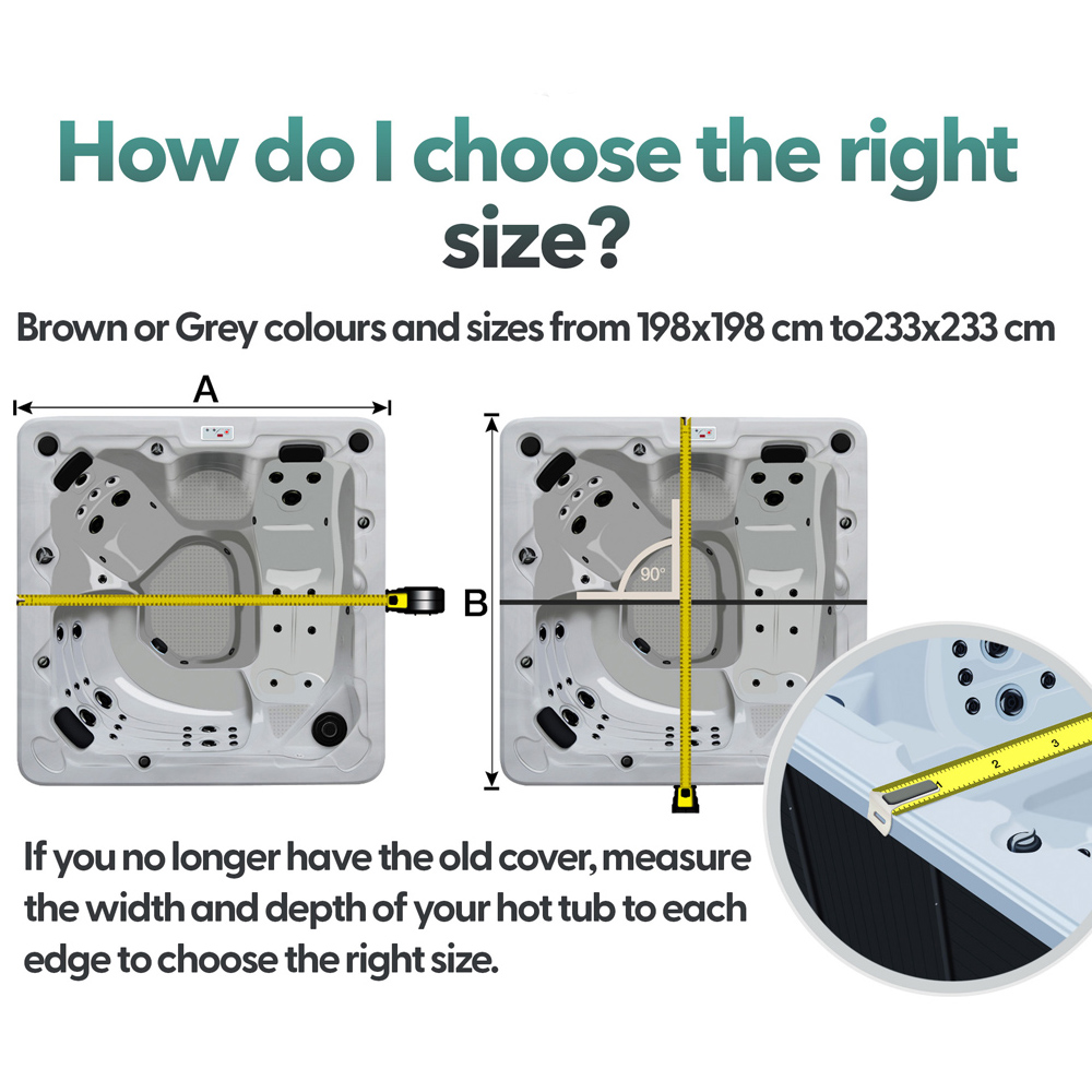 Bid adieu to chilly dips with the Canadian Spa Company Brown Hot Tub Cover. Your hot tub will always remain invitingly warm thanks to the deluxe covers, which seal in the heat. Built to withstand any weather conditions, this cover is like a warm hug for your tub. The cover, which is made from premium materials, withstands sunlight, rain, and snow. Installing the cover is easy and doesn't require much effort. Save time fussing and enjoy more time basking in the positive energy. Your tub will appreciate this hot tub cover. Size: 228 x 228cm.
