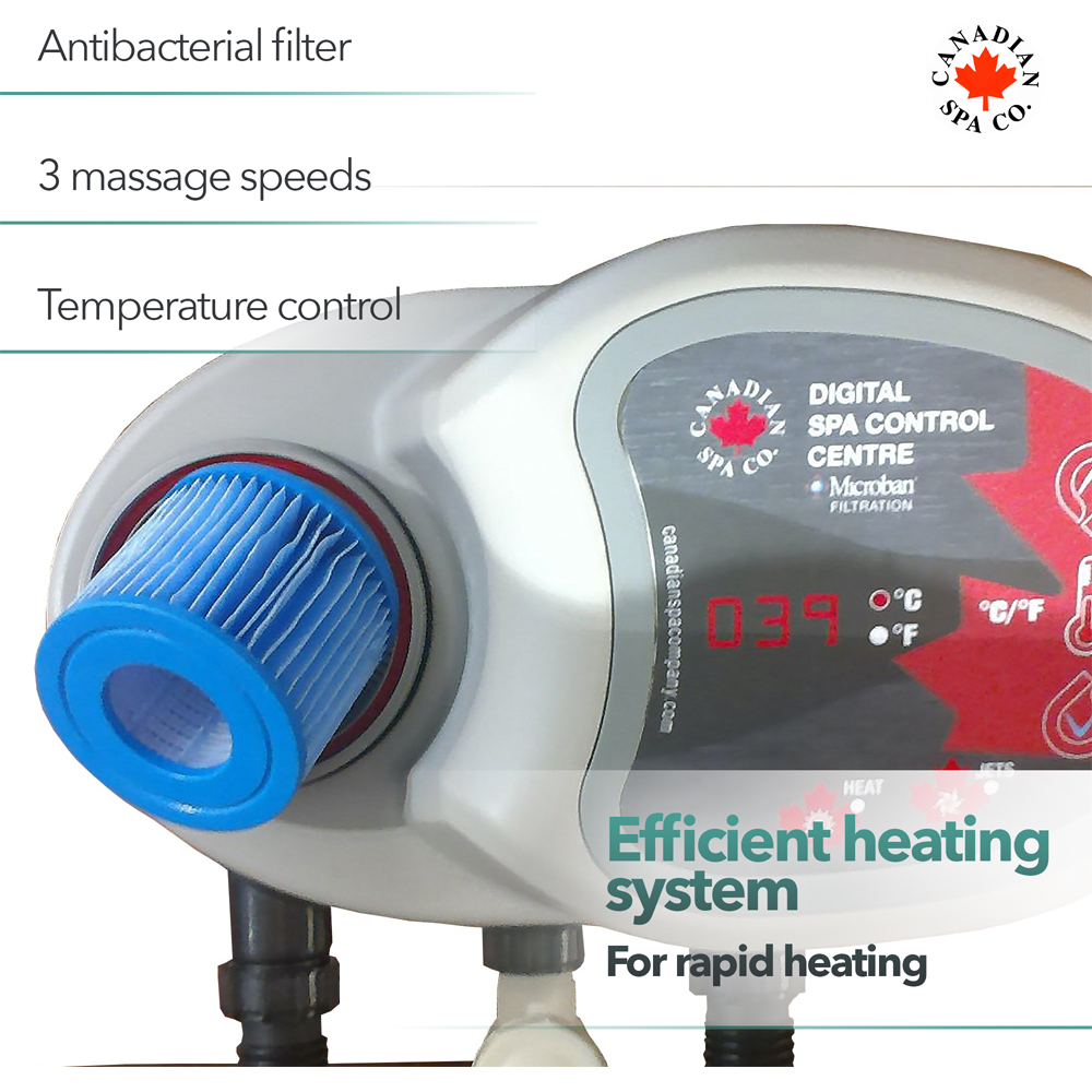 Melt away your stress away with the Canadian Spa Company Grand Rapids 4 Person Inflatable Spa. Relax in style with space for up to four people and 110 massage air jets that will make you feel like royalty. Set the mood with the included LED light, perfect for cosy nights or entertaining. Enjoy built-in aromatherapy for an added layer of relaxation during your soak. Customize your experience with 3-speed air jets to find your perfect level of comfort. Easy setup – just plug in, fill up, and unwind. This durable hot tub can withstand any weather condition, ensuring endless enjoyment. Elevate your outdoor space with the inflatable hot tub – it's relaxation at its finest.