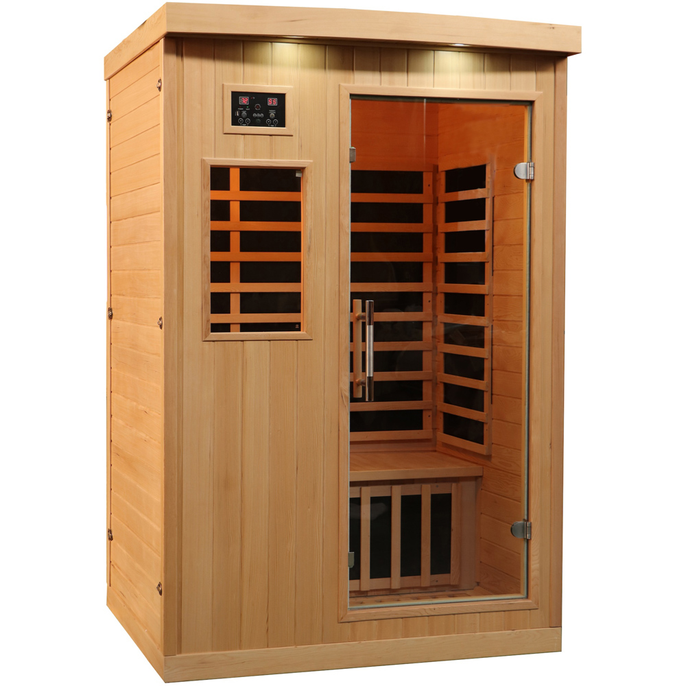 Experience ultimate relaxation with Canadian Spa Tremblant 2 Person Infrared Sauna. It features a user-friendly control system with advanced options like a timer, pre-heat, and auto-start. Features the latest technology with eight FAR infrared heaters, each lasting 3000 to 5000 hours. Crafted from beautiful and durable Canadian Hemlock wood, the sauna’s locking clasp system allows quick and easy assembly. It contains a built-in Bluetooth audio system, LED lighting, and more. The tempered safety glass doors and windows provide a modern look and a clear view of your surroundings. It comes with average EMF levels 42 times lower than competitors. With an operating temperature range of 20°F to 60°C and compatibility with a standard dedicated electrical socket. It has 1-year limited warranty on heaters and cabinetry.